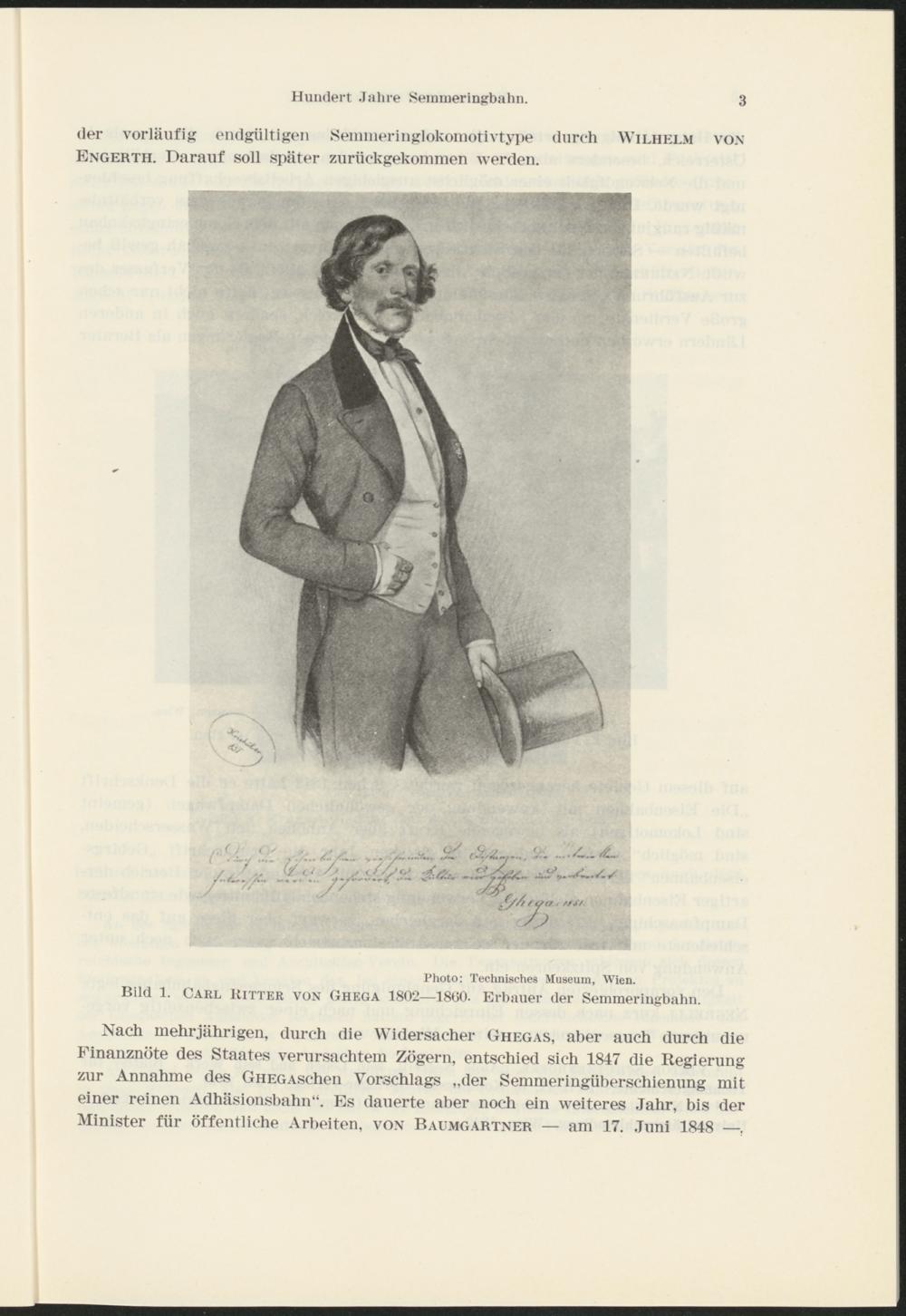 Bild 1. Carl Kitter von Ghega 1802—1800. Erbauer der Semmeringbahn.