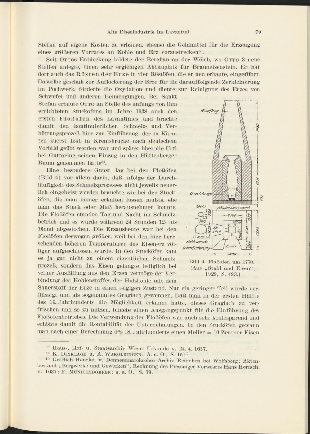 Hil(l 4. Floßofen um 1770. (Aus „Stahl und Eisen“, 1929, S. 493.)