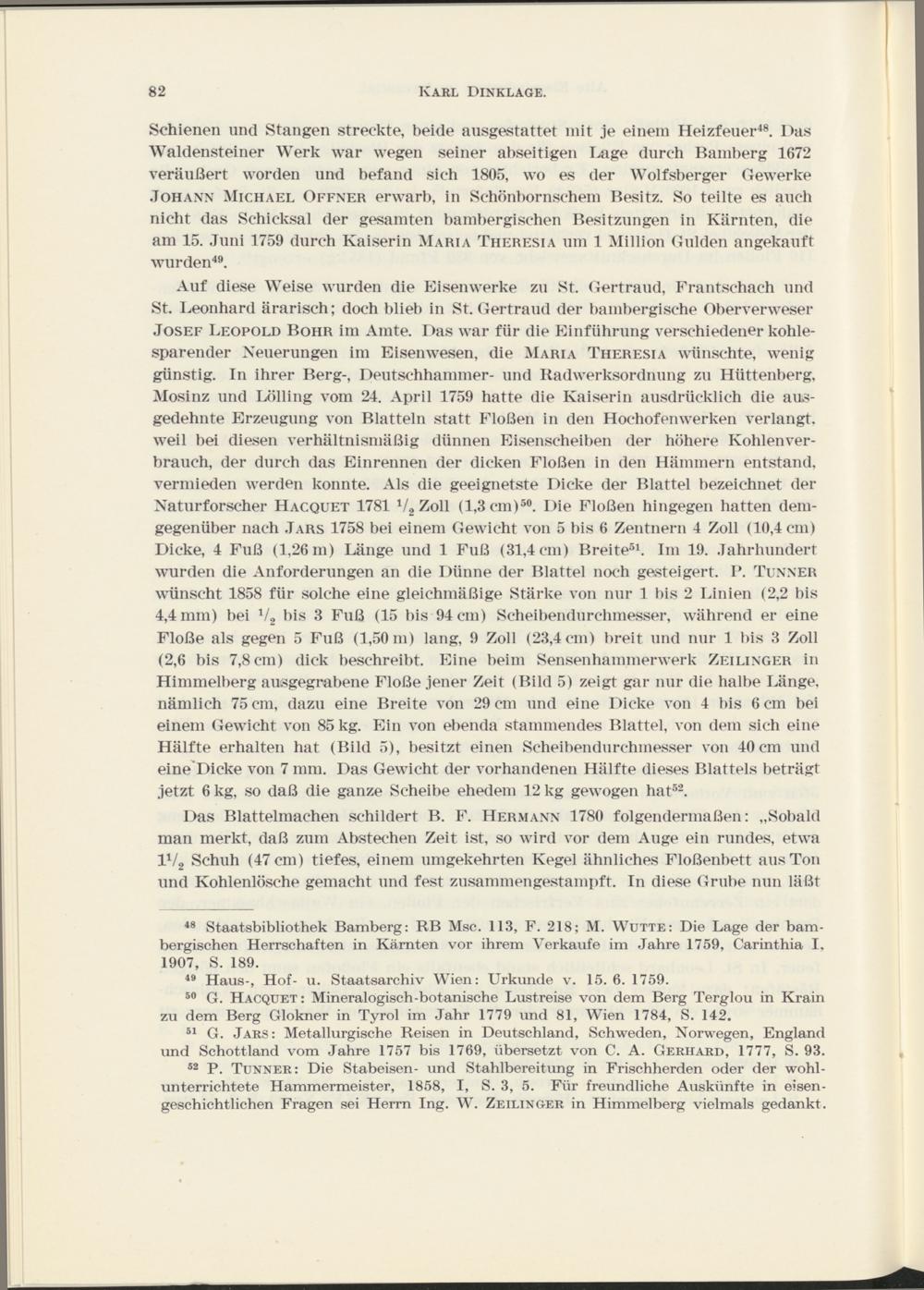 52 P. Tunner: Die Stabeisen- und Stahlbereitung in Frischherden oder der wohlunterrichtete Hammermeister, 1858, I, S. 3, 5. Für freundliche Auskünfte in eisengeschichtlichen Fragen sei Herrn Ing. W. Zeilinger in Himmelberg vielmals gedankt.