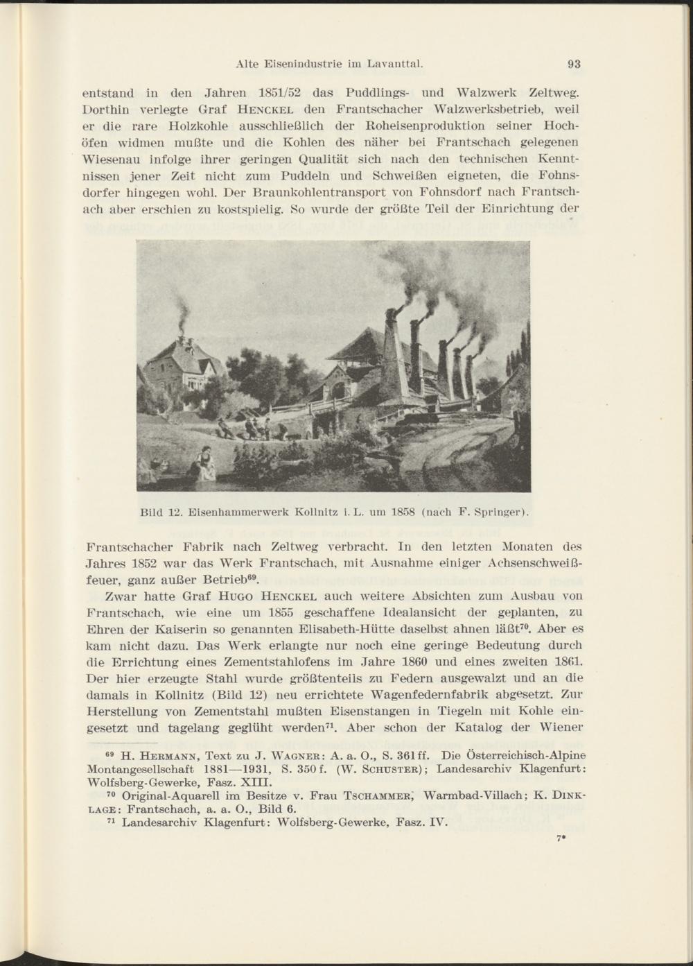 69 H. Hermann, Text zu J. Wagner: A. a. O., S. 361 ff. Die Österreichisch-Alpine Montangesellschaft 1881—1931, S. 350 f. (W. Schuster); Landesarchiv Klagenfurt: Wolfsberg-Gewerke, Fasz. XIII.