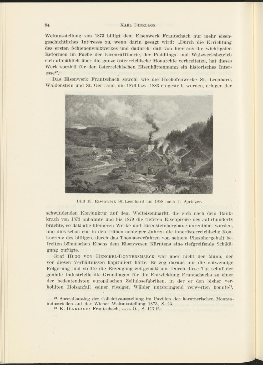 72 Specialkatalog der Collektivausstellung im Pavillon der kärntnerischen Montanindustriellen auf der Wiener Weltausstellung 1873, S. 23.
