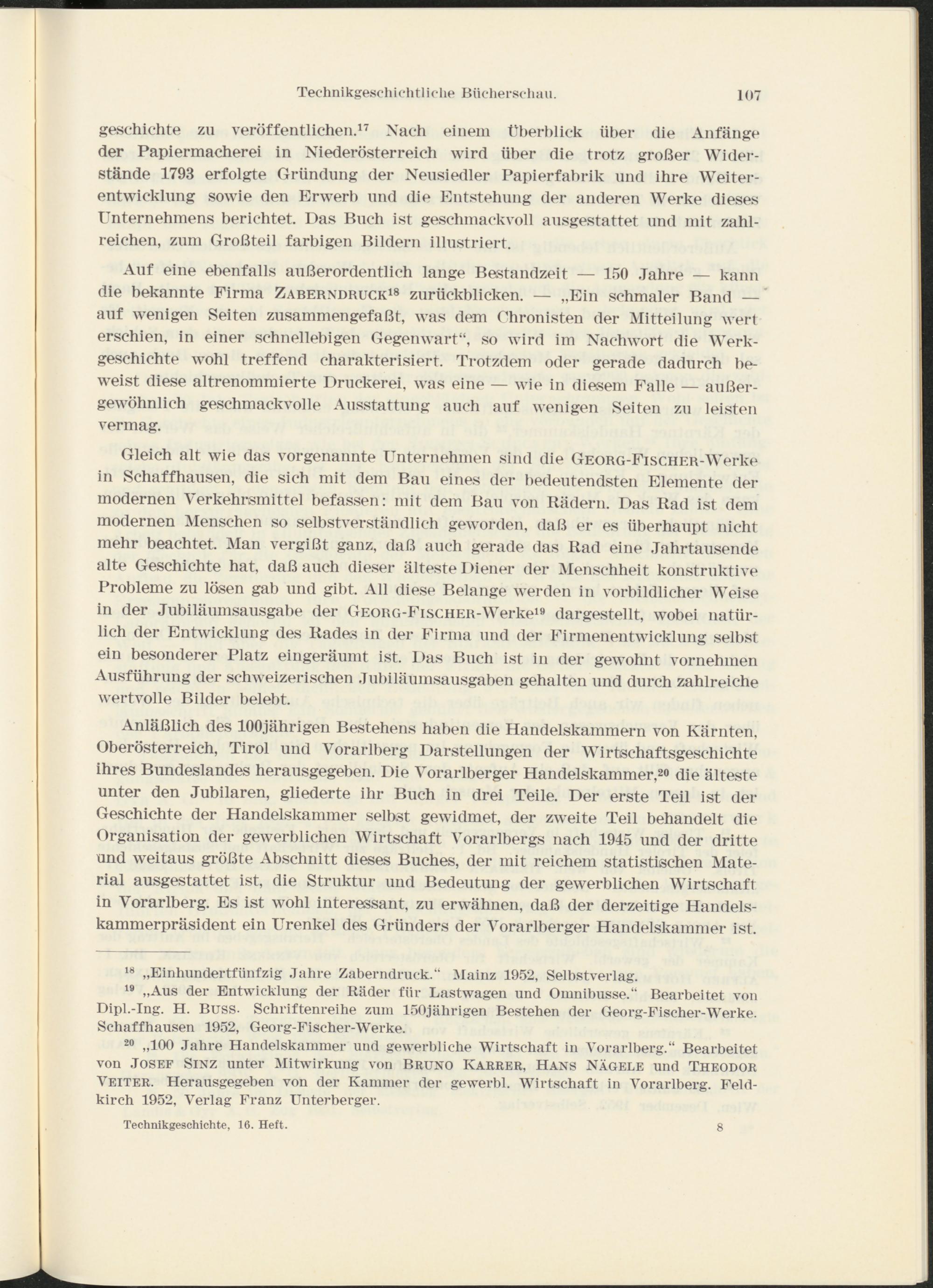 Gleich alt wie das vorgenannte Unternehmen sind die GEORG-FiscHER-Werke in Schaffhausen, die sich mit dem Bau eines der bedeutendsten Elemente der modernen Verkehrsmittel befassen: mit dem Bau von Rädern. Das Rad ist dem modernen Menschen so selbstverständlich geworden, daß er es überhaupt rächt mehr beachtet. Man vergißt ganz, daß auch gerade das Rad eine Jahrtausende alte Geschichte hat, daß auch dieser älteste Diener der Menschheit konstruktive Probleme zu lösen gab und gibt. All diese Belange werden in vorbildlicher Weise in der Jubiläumsausgabe der GEORG-FiscHER-Werke 19 dargestellt, wobei natürlich der Entwicklung des Rades in der Firma und der Firmenentwicklung selbst ein besonderer Platz eingeräumt ist. Das Buch ist in der gewohnt vornehmen Ausführung der schweizerischen Jubiläumsausgaben gehalten und durch zahlreiche wertvolle Bilder belebt.