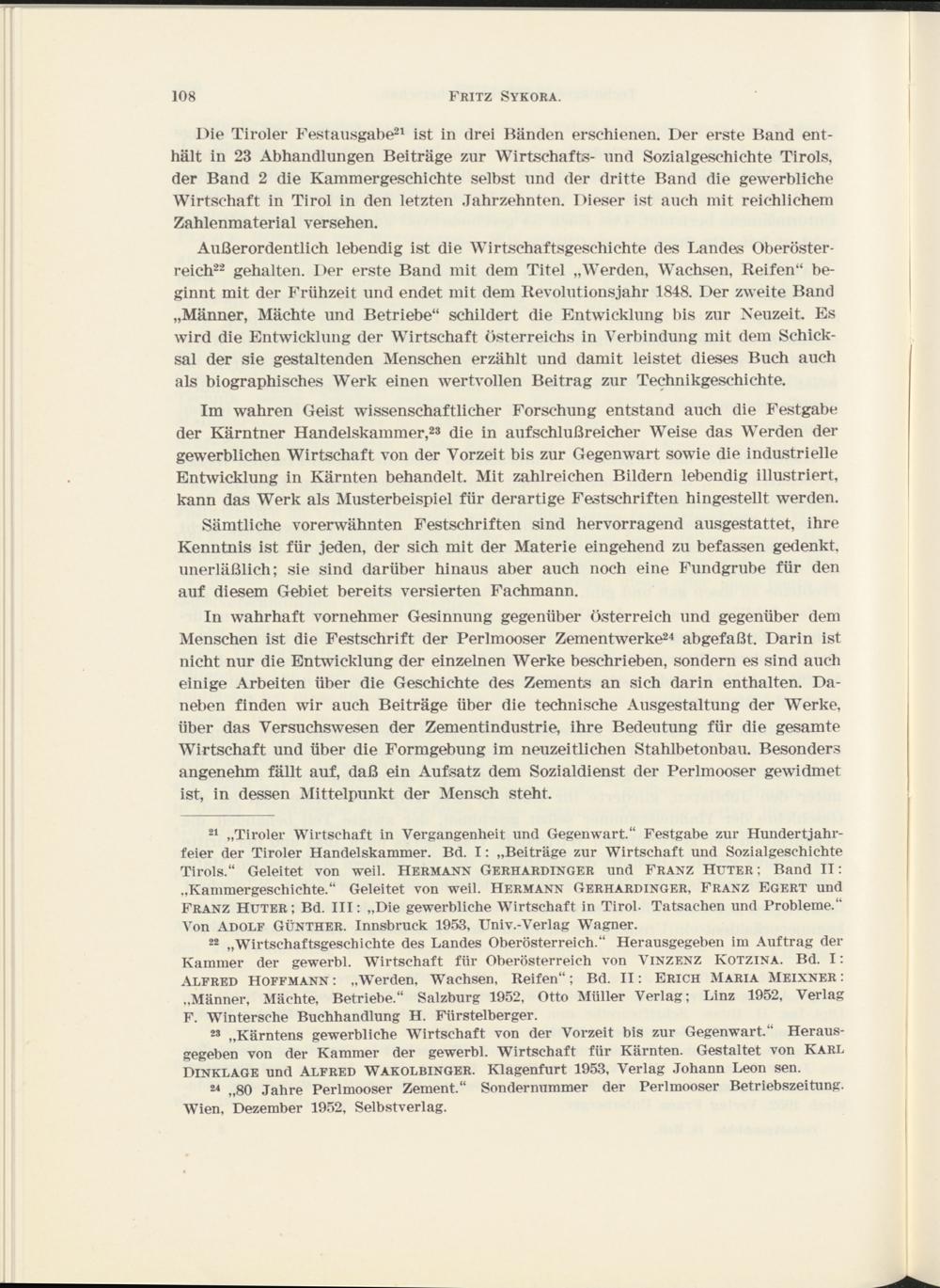 22 „Wirtschaftsgeschichte des Landes Oberösterreich.“ Herausgegeben im Auftrag der Kammer der gewerbl. Wirtschaft für Oberösterreich von Vinzenz Kotzina. Bd. I: Alfred Hoffmann: „W T erden, Wachsen, Reifen“; Bd. II: Erich Maria Meixner: „Männer, Mächte, Betriebe.“ Salzburg 1952, Otto Müller Verlag; Linz 1952, Verlag F. Wintersche Buchhandlung H. Fürsteiberger.