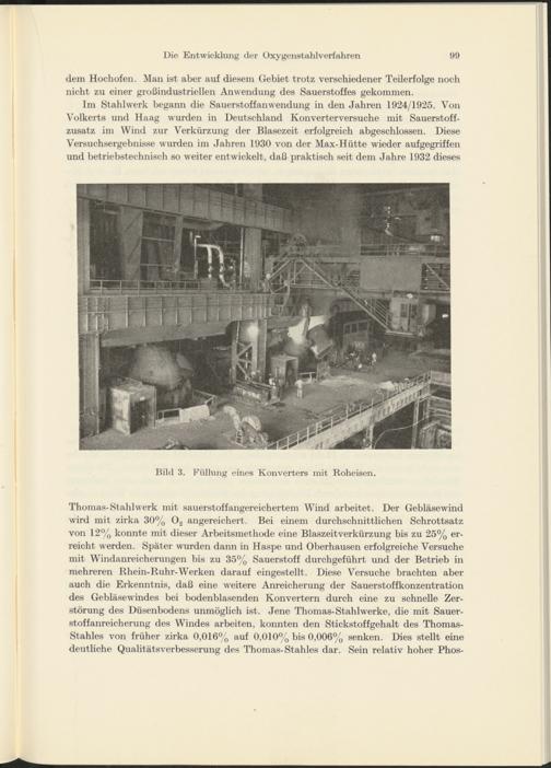 Im Stahlwerk begann die Sauerstoffanwendung in den Jahren 1924/1925. Von Volkerts und Haag wurden in Deutschland Konverterversuche mit Sauerstoffzusatz im Wind zur Verkürzung der Blasezeit erfolgreich abgeschlossen. Diese Versuchsergebnisse wurden im Jahren 1930 von der Max-Hütte wieder aufgegriffen und betriebstechnisch so weiter entwickelt, daß praktisch seit dem Jahre 1932 dieses