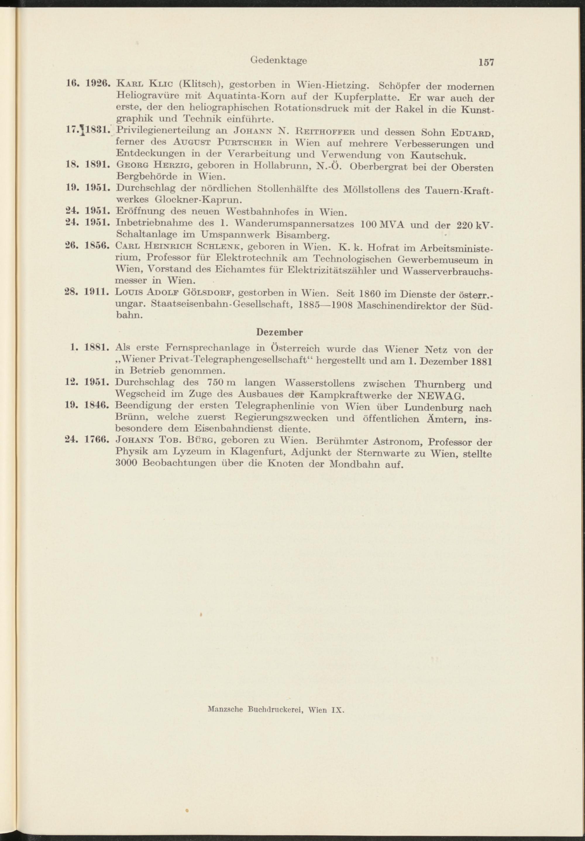 Privilegienerteilung an Johann X. Reithoffer und dessen Sohn Eduard, ferner des August Purtscher in Wien auf mehrere Verbesserungen und Entdeckungen in der Verarbeitung und Verwendung von Kautschuk. Georg Herzig, geboren in Hollabrunn, N.-Ö. Überbergrat bei der Obersten Bergbehörde in Wien.