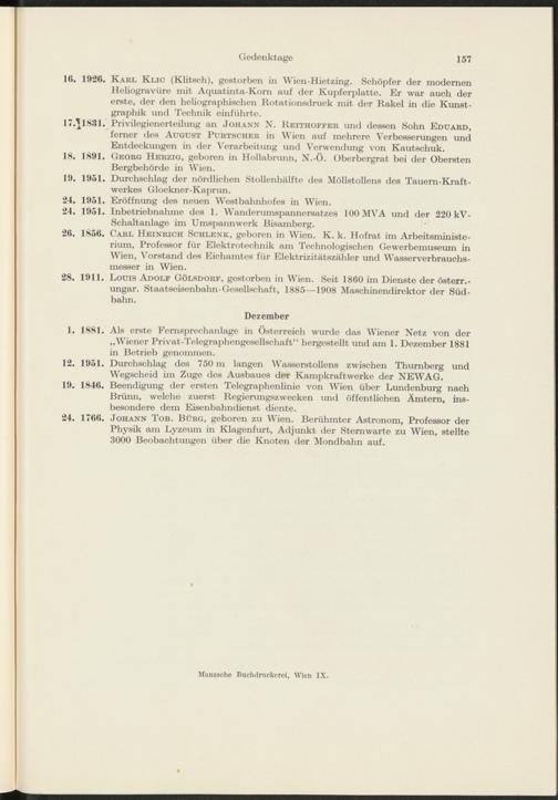 Durchschlag des 750 m langen Wasserstollens zwischen Thumberg und Wegscheid im Zuge des Ausbaues der Kampkraftwerke der NEWAG. Beendigung der ersten Telegraphenlinie von Wien über Lundenburg nach Brünn, welche zuerst Regierungszwecken und öffentlichen Ämtern, insbesondere dem Eisenbahndienst diente.