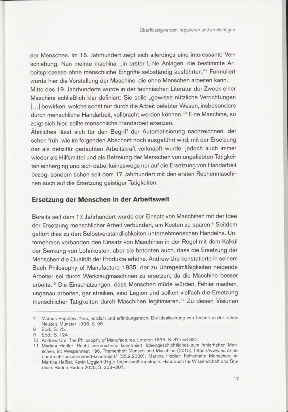 11 Martina Heßler: Recht unzureichend konstruiert. Ideengeschichtliches zum fehlerhaften Menschen, in: Wespennest 196, Themenheft Mensch und Maschine (2015), https://www.eurozine. com/recht-unzureichend-konstruiert/ (25.9.2020); Martina Heßler: Fehlerhafte Menschen, in: Martina Heßler, Kevin Liggieri (Hg.): Technikanthropologie. Handbuch für Wissenschaft und Studium. Baden Baden 2020, S. 303-307.