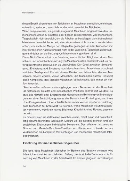 Gleichermaßen müssen weitere gängige polare Narrative mit der Komplexität historischer Realität und menschlicher Praktiken konfrontiert werden: So etwa das Narrativ einer Ersetzung der Menschen als Befreiung von Mühsal zugunsten einer Ermächtigung versus das Narrativ ihrer Erniedrigung und ihres Überflüssigwerdens. Oder schließlich die immer wieder repetierte Erzählung, dass Menschen für Kreativität frei werden, wenn Maschinen Routinetätigkeiten vornehmen, womit ein naives Bild einer Kreativität ohne Routine gezeichnet wird.
