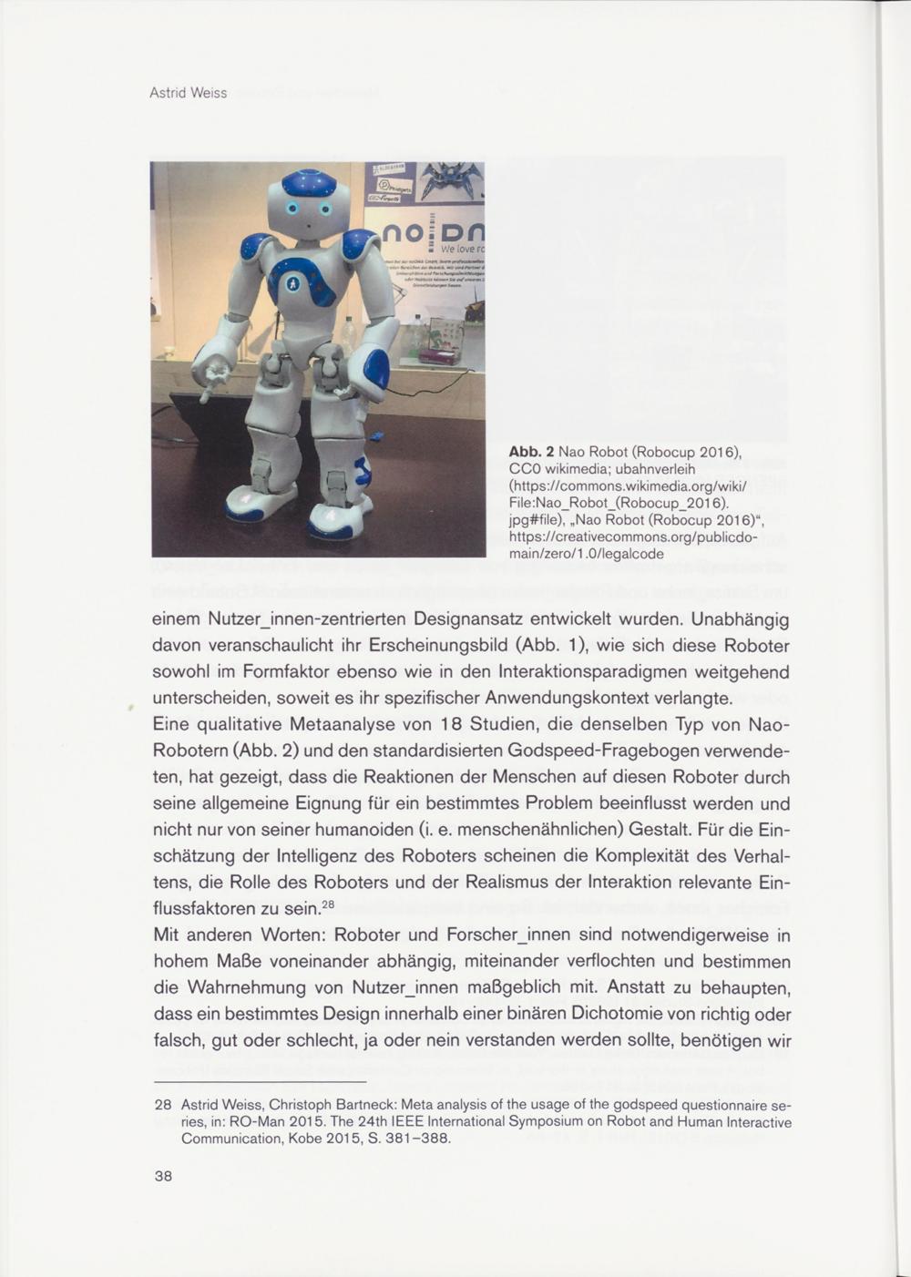 28 Astrid Weiss, Christoph Bartneck: Meta analysis of the usage of the godspeed questionnaire series, in: RO-Man 2015. The 24th IEEE International Symposium on Robot and Human Interactive Communication, Kobe 2015, S. 381-388.