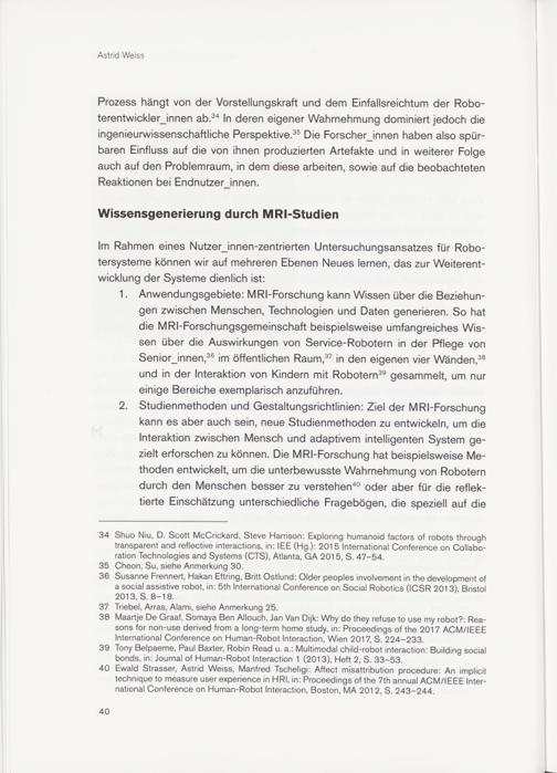 40 Ewald Strasser, Astrid Weiss, Manfred Tscheligi: Affect misattribution procedure: An implicit technique to measure user experience in HRI, in: Proceedings of the 7th annual ACM/IEEE International Conference on Human-Robot Interaction, Boston, MA 201 2, S. 243-244.