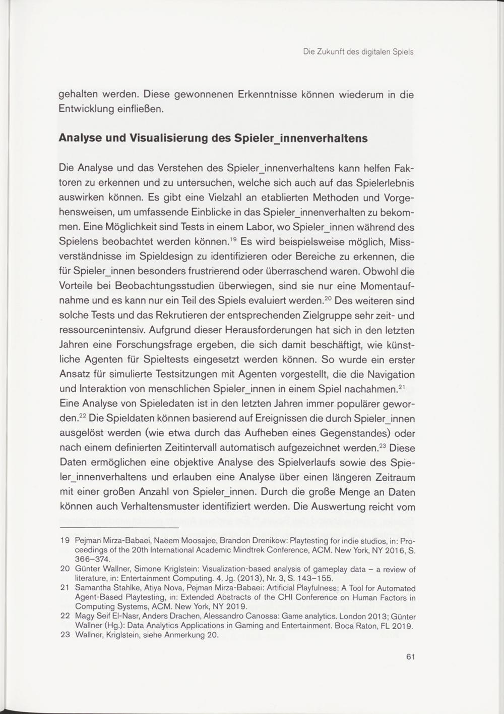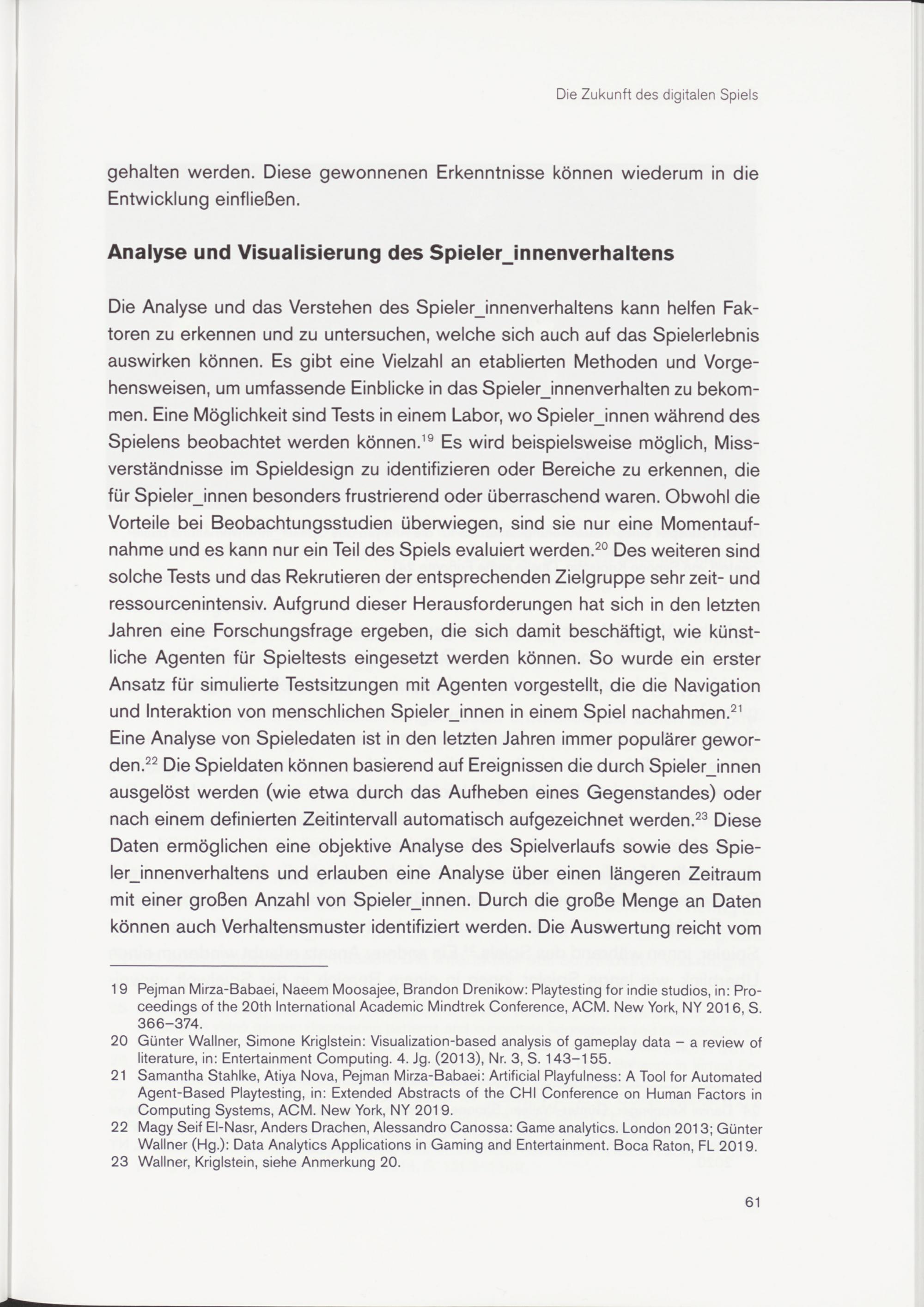 22 Magy Seif El-Nasr, Anders Drachen, Alessandro Canossa: Game analytics. London 2013; Günter Wallner (Hg.): Data Analytics Applications in Gaming and Entertainment. Boca Raton, FL 2019.