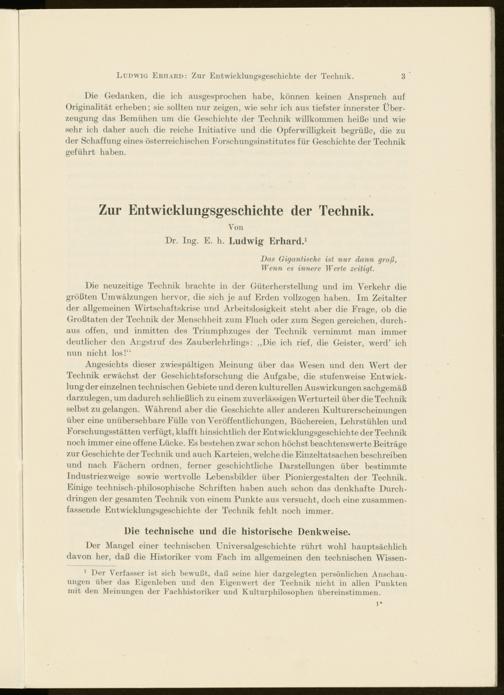 Die Gedanken, die ich ausgesprochen habe, können keinen Anspruch auf Originalität erheben; sie sollten nur zeigen, wie sehr ich aus tiefster innerster Überzeugung das Bemühen um die Geschichte der Technik willkommen heiße und wie sehr ich daher auch die reiche Initiative und die Opferwilligkeit begrüße, die zu der Schaffung eines österreichischen Forschungsinstitutes für Geschichte der Technik geführt haben.