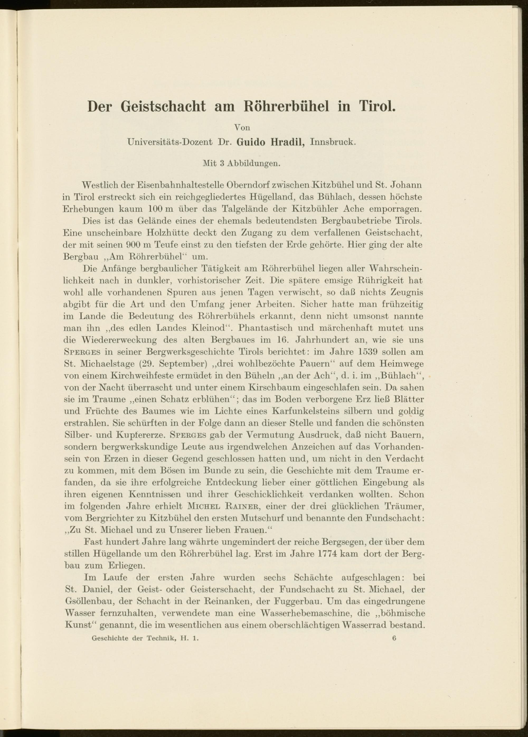 Die Anfänge bergbaulicher Tätigkeit am Röhrerbühel liegen aller Wahrscheinlichkeit nach in dunkler, vorhistorischer Zeit. Die spätere emsige Rührigkeit hat wohl alle vorhandenen Spuren aus jenen Tagen verwischt, so daß nichts Zeugnis abgibt für die Art und den Umfang jener Arbeiten. Sicher hatte man frühzeitig im Lande die Bedeutung des Röhrerbühels erkannt, denn nicht umsonst nannte man ihn ,,des edlen Landes Kleinod“. Phantastisch und märchenhaft mutet uns die Wiedererweckung des alten Bergbaues im 16. Jahrhundert an, wie sie uns Sperges in seiner Bergwerksgeschichte Tirols berichtet : im Jahre 1539 sollen am St. Michaelstage (29. September) „drei wohlbezöchte Pauern“ auf dem Heimwege von einem Kirchweihfeste ermüdet in den Büheln ,,an der Ach“, d. i. im „Bühlach“, von der Nacht überrascht und unter einem Kirschbaum eingeschlafen sein. Da sahen sie im Traume „einen Schatz erblühen“; das im Boden verborgene Erz ließ Blätter und Früchte des Baumes wie im Lichte eines Karfunkelsteins silbern und goldig erstrahlen. Sie schürften in der Folge dann an dieser Stelle und fanden die schönsten Silber- und Kupfererze. Sperges gab der Vermutung Ausdruck, daß nicht Bauern, sondern bergwerkskundige Leute aus irgendwelchen Anzeichen auf das Vorhandensein von Erzen in dieser Gegend geschlossen hatten und, um nicht in den Verdacht zu kommen, mit dem Bösen im Bunde zu sein, die Geschichte mit dem Traume erfanden, da sie ihre erfolgreiche Entdeckung lieber einer göttlichen Eingebung als ihren eigenen Kenntnissen und ihrer Geschicklichkeit verdanken wollten. Schon im folgenden Jahre erhielt Michel Rainer, einer der drei glücklichen Träumer, vom Bergrichter zu Kitzbühel den ersten Mutschurf und benannte den Eundschacht: „Zu St. Michael und zu Unserer lieben Frauen.“