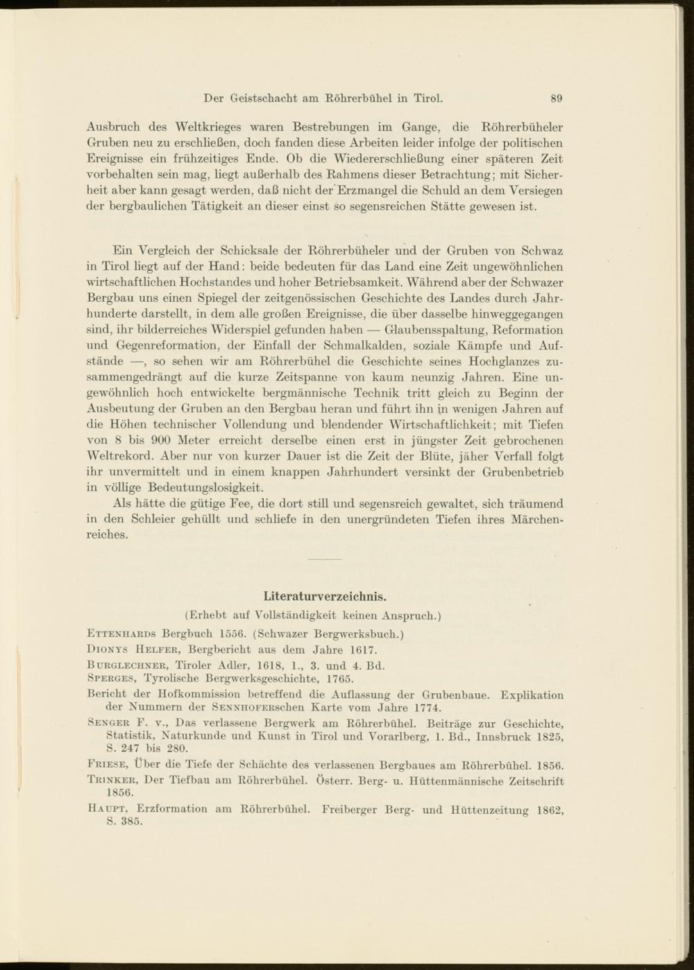 Ausbruch des Weltkrieges waren Bestrebungen im Gange, die Röhrerbüheler Gruben neu zu erschließen, doch fanden diese Arbeiten leider infolge der politischen Ereignisse ein frühzeitiges Ende. Ob die Wiedererschließung einer späteren Zeit Vorbehalten sein mag, liegt außerhalb des Rahmens dieser Betrachtung; mit Sicherheit aber kann gesagt werden, daß nicht der Erz mangel die Schuld an dem Versiegen der bergbaulichen Tätigkeit an dieser einst so segensreichen Stätte gewesen ist.