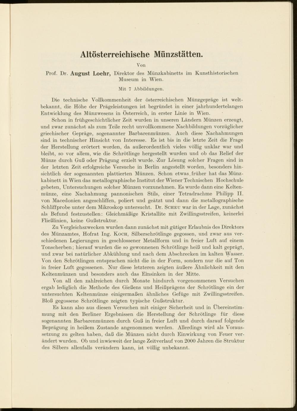 Prof. Dr. August Loehr, Direktor des Münzkabinetts im Kunsthistorischen