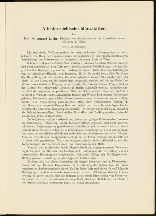 Es kann also aus diesen Versuchen mit einiger Sicherheit und in Übereinstimmung mit den Berliner Ergebnissen die Herstellung der Schrötlinge für diese sogenannten Barbarenmünzen durch Guß in freier Luft und durch darauf folgende Beprägung in heißem Zustande angenommen werden. Allerdings wird als Voraussetzung zu gelten haben, daß die Münzen nicht durch Einwirkung von Feuer verändert wmrden. Ob und inwieweit der lange Zeitverlauf von 2000 Jahren die Struktur des Silbers allenfalls verändern kann, ist völlig unbekannt.