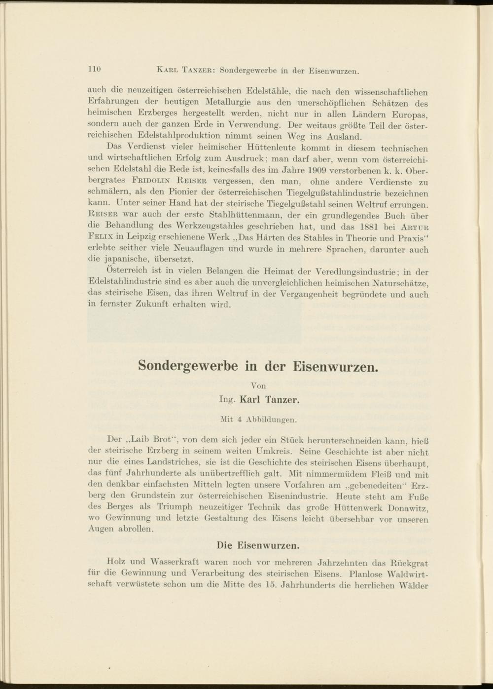 Das Verdienst vieler heimischer Hüttenleute kommt in diesem technischen und wirtschaftlichen Erfolg zum Ausdruck; man darf aber, wenn vom österreichischen Edelstahl die Rede ist, keinesfalls des im Jahre 1909 verstorbenen k. k. Oberbergrates Fridolin Reiser vergessen, den man, ohne andere Verdienste zu schmälern, als den Pionier der österreichischen Tiegelgußstahlindustrie bezeichnen kann. Unter seiner Hand hat der steirische Tiegelgußstahl seinen Weltruf errungen. Reiser war auch der erste Stahlhüttenmann, der ein grundlegendes Buch über die Behandlung des Werkzeugstahles geschrieben hat, und das 1881 bei Artur Felix in Leipzig erschienene Werk ,,Das Härten des Stahles in Theorie und Praxis“ erlebte seither viele Neuauflagen und wurde in mehrere Sprachen, darunter auch die japanische, übersetzt.