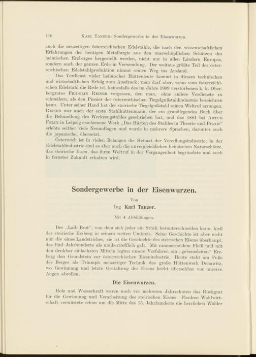 auch die neuzeitigen österreichischen Edelstähle, die nach den wissenschaftlichen Erfahrungen der heutigen Metallurgie aus den unerschöpflichen Schätzen des heimischen Erzberges hergestellt werden, nicht nur in allen Ländern Europas, sondern auch der ganzen Erde in Verwendung. Der weitaus größte Teil der österreichischen Edelstahlproduktion nimmt seinen Weg ins Ausland.