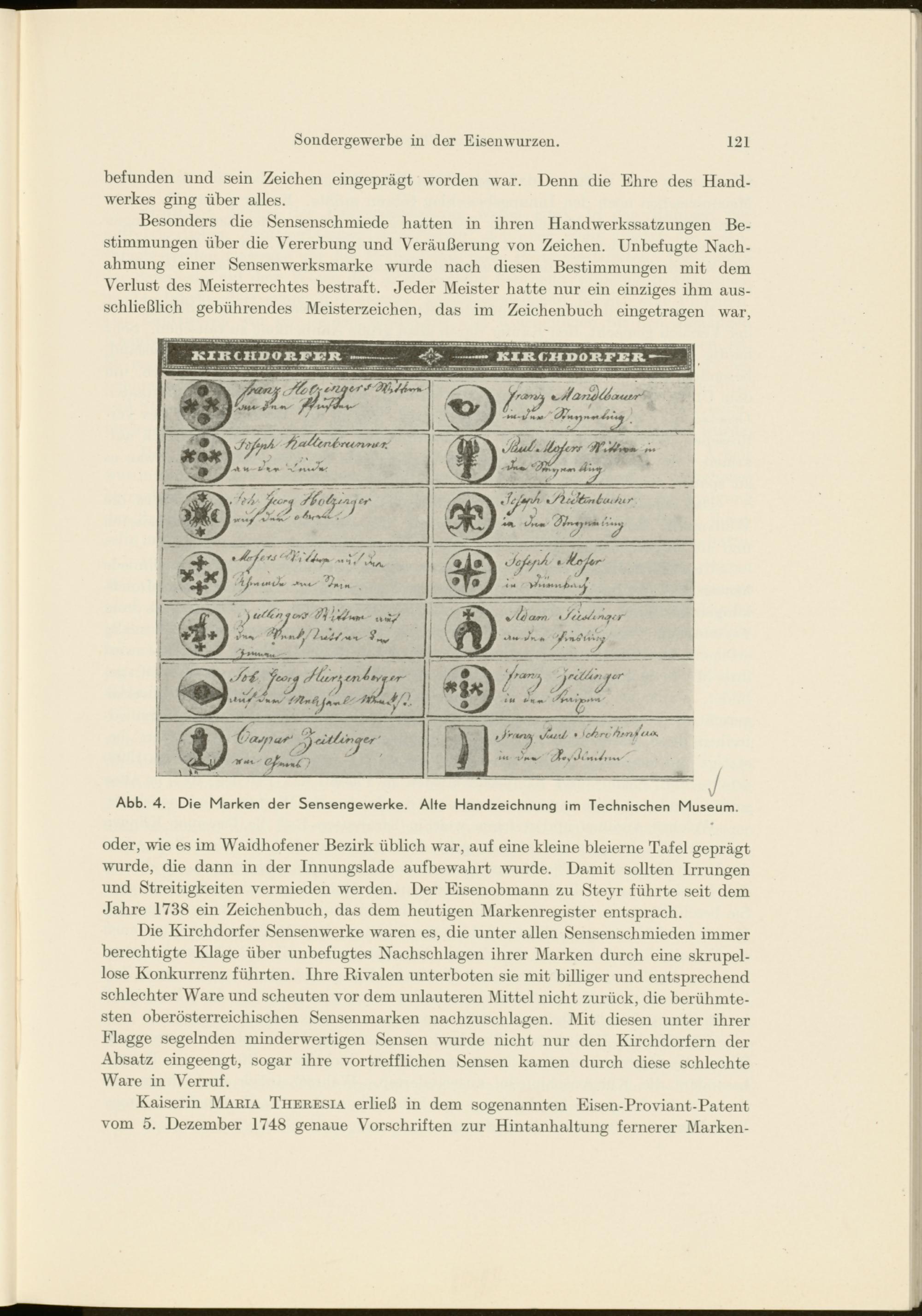Abb. 4. Die Marken der Sensengewerke. Alle Handzeichnung im Technischen Museum.