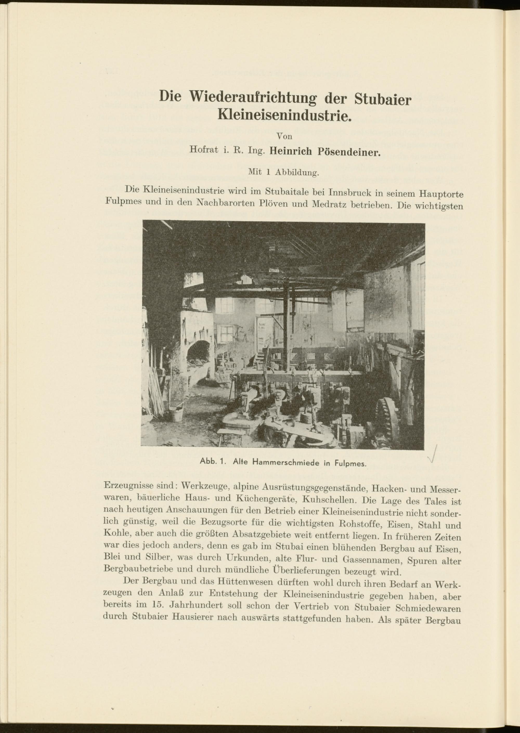 Die Wiederaufrichtung der Stubaier Kleineisenindustrie.