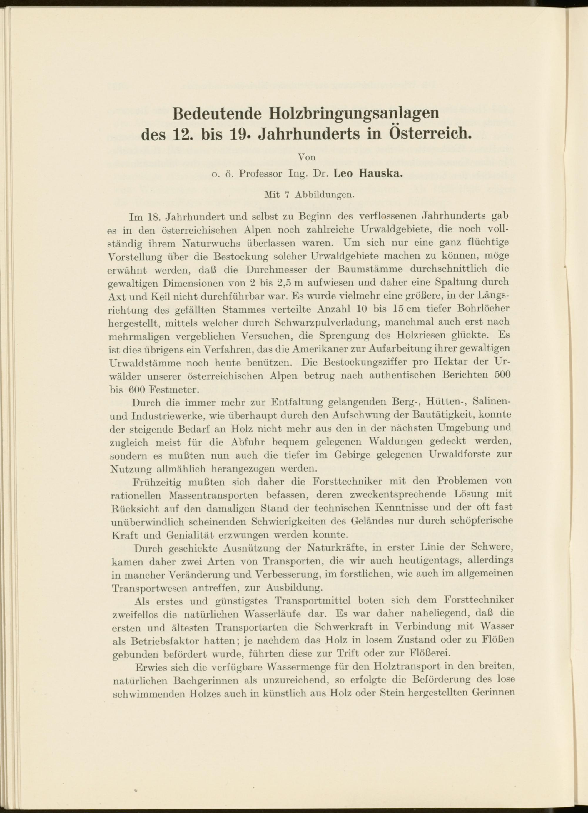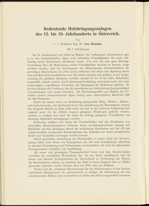 Frühzeitig mußten sich daher die Forsttechniker mit den Problemen von rationellen Massentransporten befassen, deren zweckentsprechende Lösung mit Rücksicht auf den damaligen Stand der technischen Kenntnisse und der oft fast unüberwindlich scheinenden Schwierigkeiten des Geländes nur durch schöpferische Kraft und Genialität erzwungen werden konnte.
