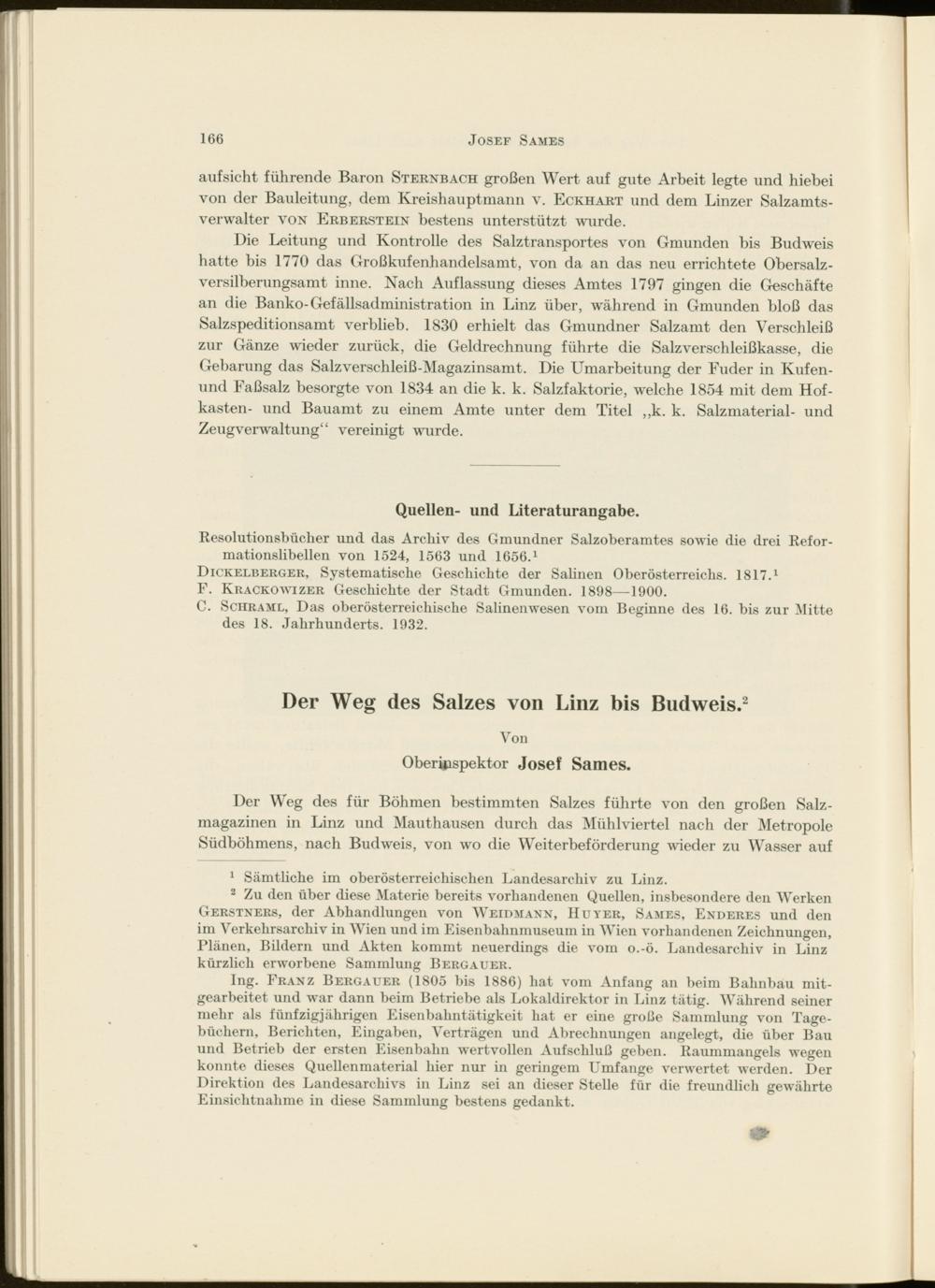 Resolutionsbücher und das Archiv des Gmundner Salzoberamtes sowie die drei Reformationslibellen von 1524, 1563 und 1656. 1 Dickelberger, Systematische Geschichte der Salinen Oberösterreichs. 1817. 1 F. Krackowizer Geschichte der Stadt Gmunden. 1898—1900.