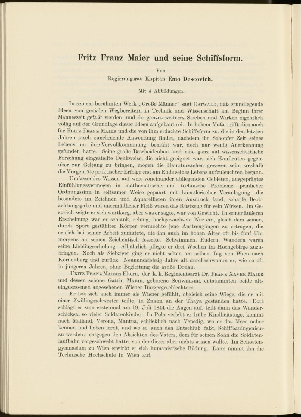 Regierungsrat Kapitän Emo Descovich. Mit 4 Abbildungen.