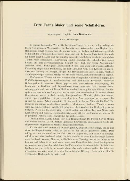 In seinem berühmten Werk „Große Männer“ sagt Ostwald, daß grundlegende Ideen von genialen Wegbereitern in Technik und Wissenschaft am Beginn ihrer Manneszeit gefaßt werden, und ihr ganzes weiteres Streben und Wirken eigentlich völlig auf der Grundlage dieser Ideen aufgebaut sei. In hohem Maße trifft dies auch für Fritz Franz Maier und die von ihm erdachte Schiffsform zu, die in den letzten Jahren rasch zunehmende Anwendung findet, nachdem ihr Schöpfer Zeit seines Lebens um ihre Vervollkommnung bemüht war, doch nur wenig Anerkennung gefunden hatte. Seine große Bescheidenheit und eine ganz auf wissenschaftliche Forschung eingestellte Denkweise, die nicht geeignet war, sich Kaufleuten gegenüber zur Geltung zu bringen, mögen die Hauptursachen gewesen sein, weshalb die Morgenröte praktischer Erfolge erst am Ende seines Lebens aufzuleuchten begann.