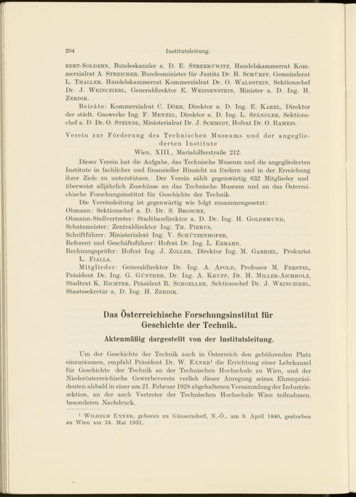 Beiräte: Kommerzialrat C. Dörr, Direktor a. D. Ing. E. Karel, Direktor der städt. Gaswerke Ing. E. Menzel, Direktor a. D. Ing. L. Spängler, Sektionschef a. D. Dr. 0. Steindl, Ministerialrat Dr. J. Schmidt, Hofrat Dr. 0. Rameis.
