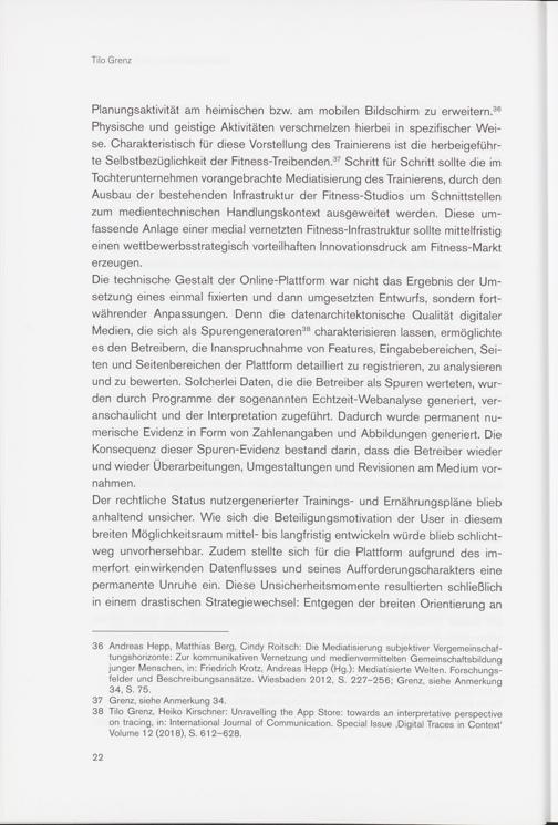 38 Tilo Grenz, Heiko Kirschner: Unravelling the App Store: towards an interpretative perspective on tracing, in: International Journal of Communication. Special Issue .Digital Traces in Context' Volume 1 2 (201 8), S. 61 2-628.