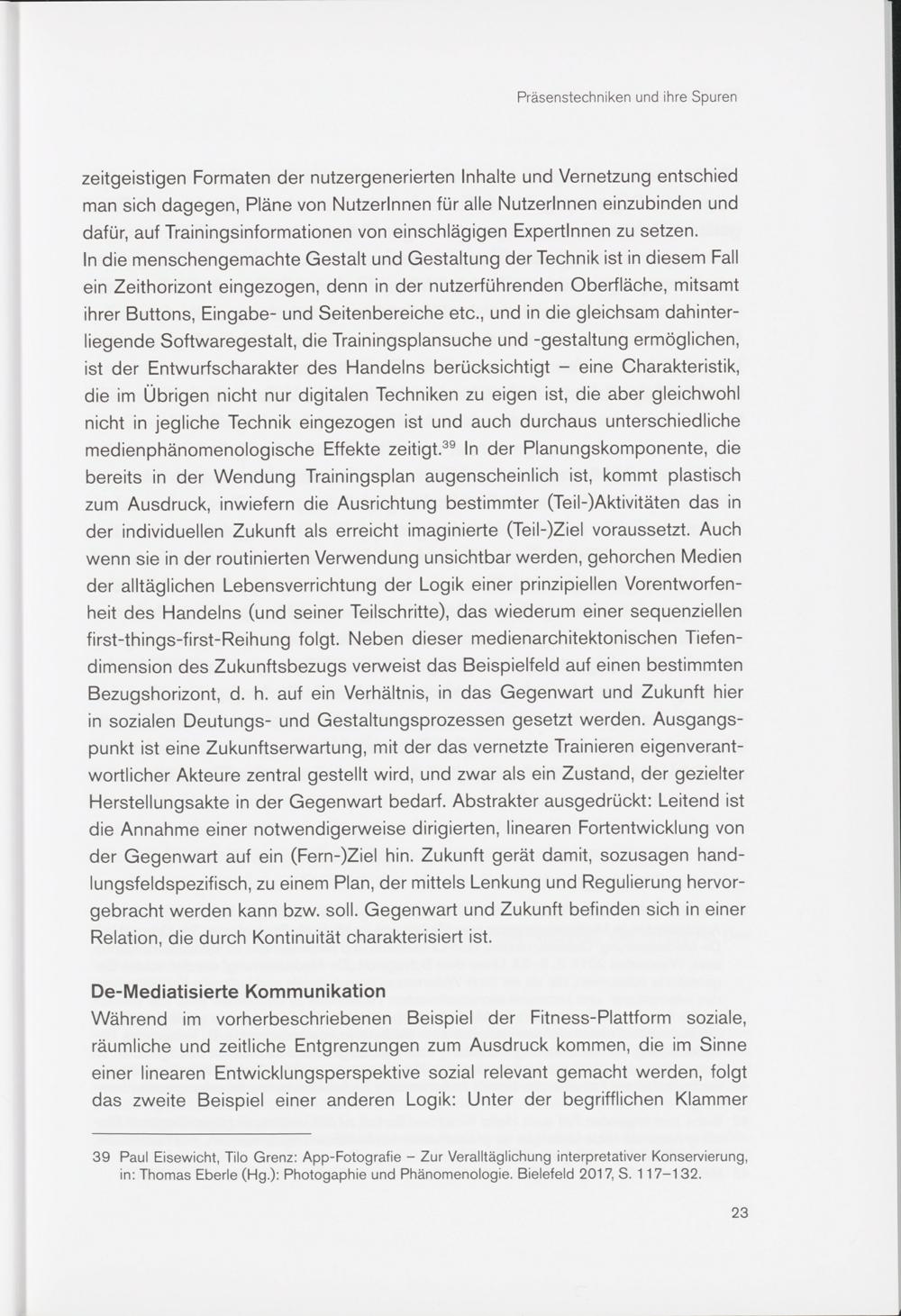 39 Paul Eisewicht, Tilo Grenz: App-Fotografie - Zur Veralltäglichung interpretativer Konservierung, in: Thomas Eberle (Hg.): Photogaphie und Phänomenologie. Bielefeld 2017, S. 117-132.