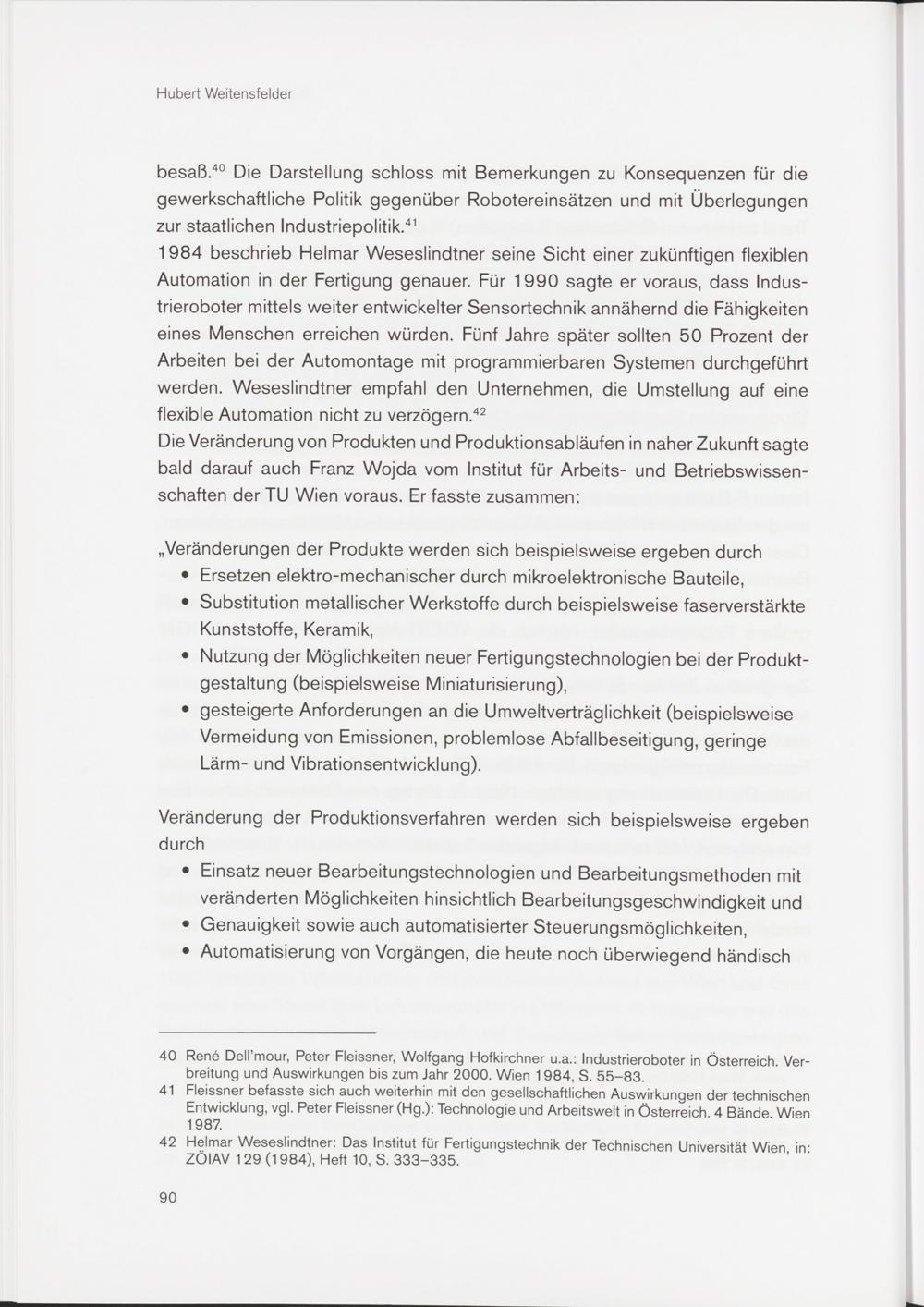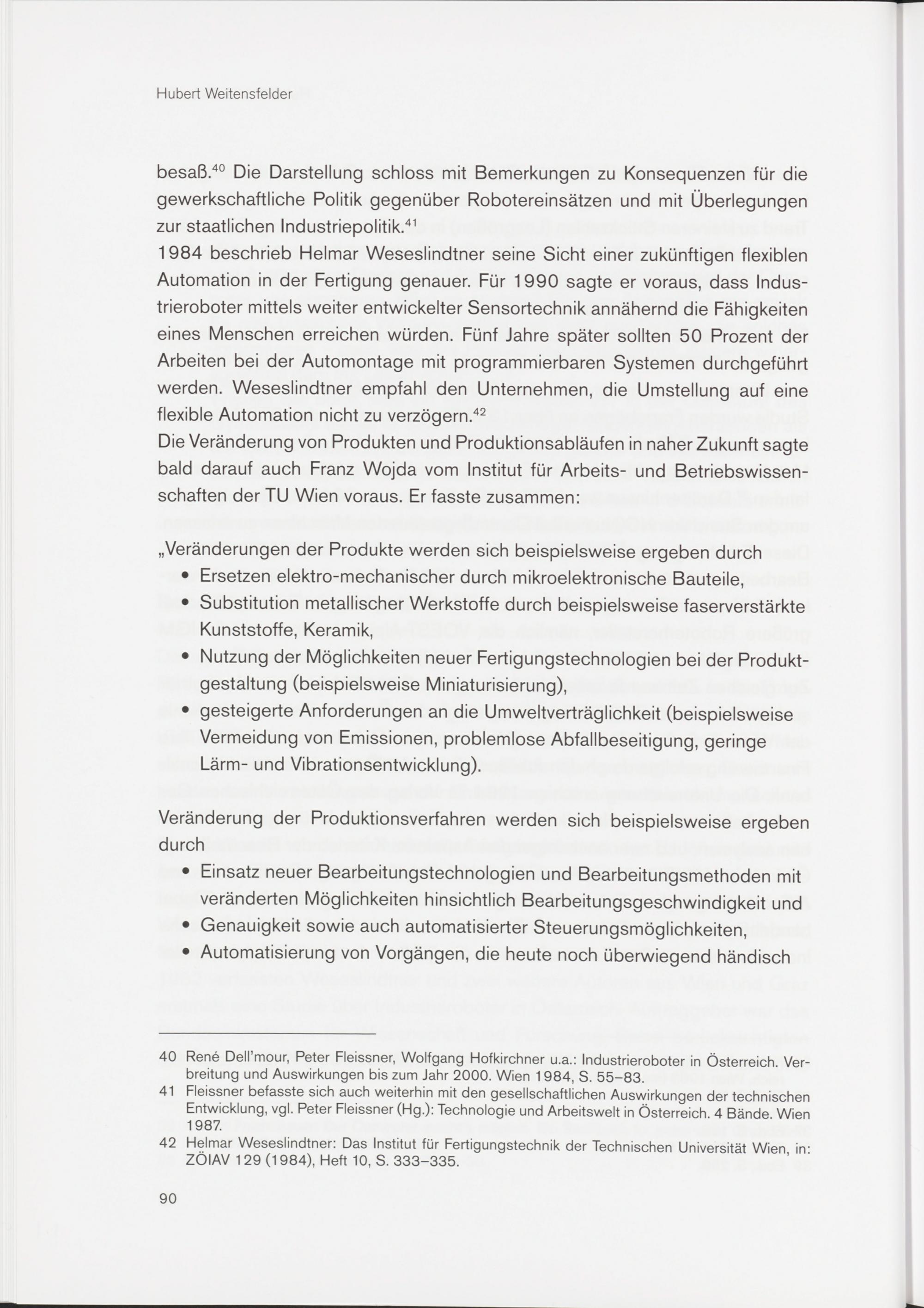 41 Fleissner befasste sich auch weiterhin mit den gesellschaftlichen Auswirkungen der technischen Entwicklung, vgl. Peter Fleissner (Hg.): Technologie und Arbeitswelt in Österreich. 4 Bände. Wien 1987.