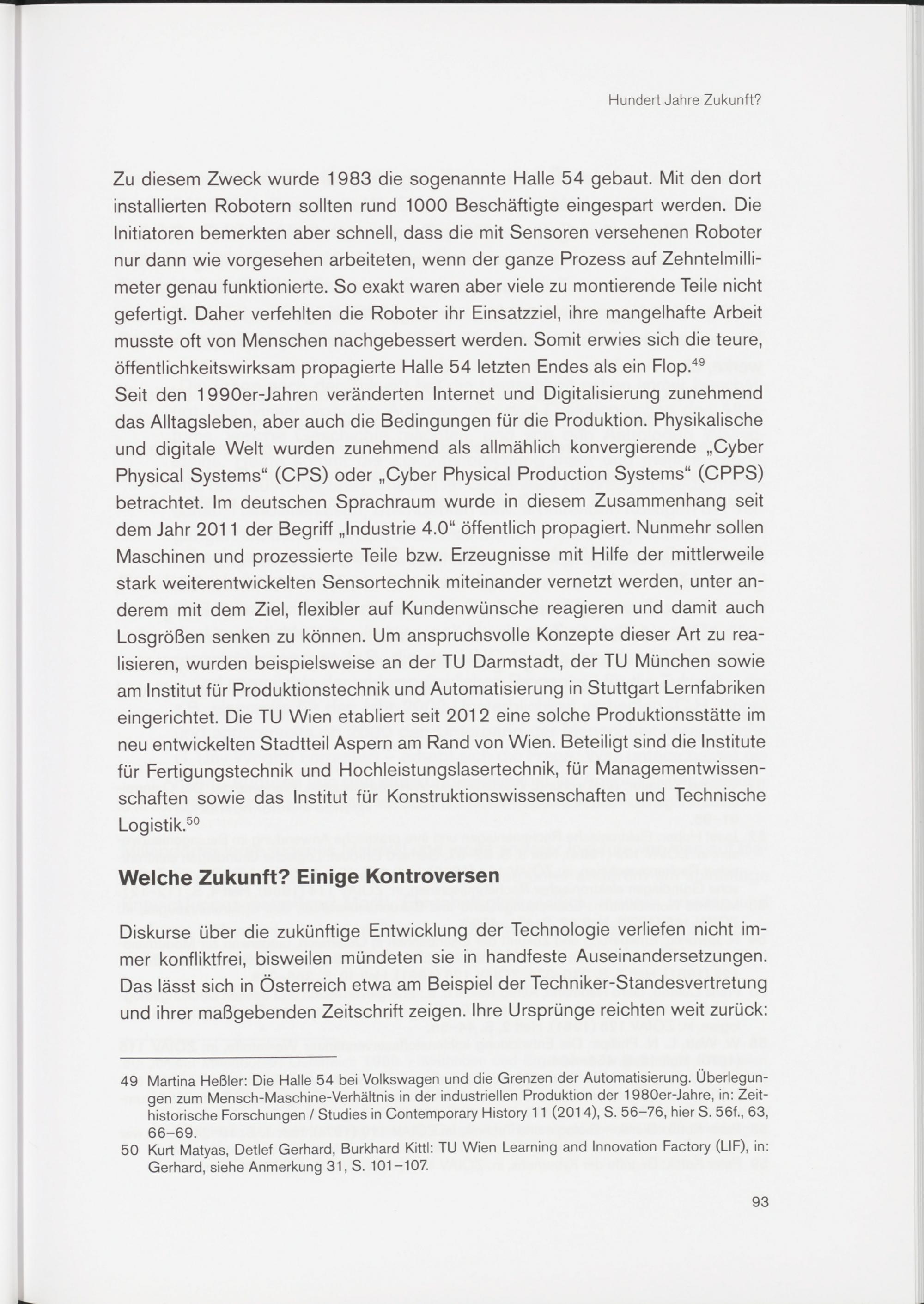 49 Martina Heßler: Die Halle 54 bei Volkswagen und die Grenzen der Automatisierung. Überlegungen zum Mensch-Maschine-Verhältnis in der industriellen Produktion der 1980er-Jahre, in: Zeithistorische Forschungen / Studies in Contemporary History 11 (2014), S. 56-76, hier S. 56f., 63, 66-69.