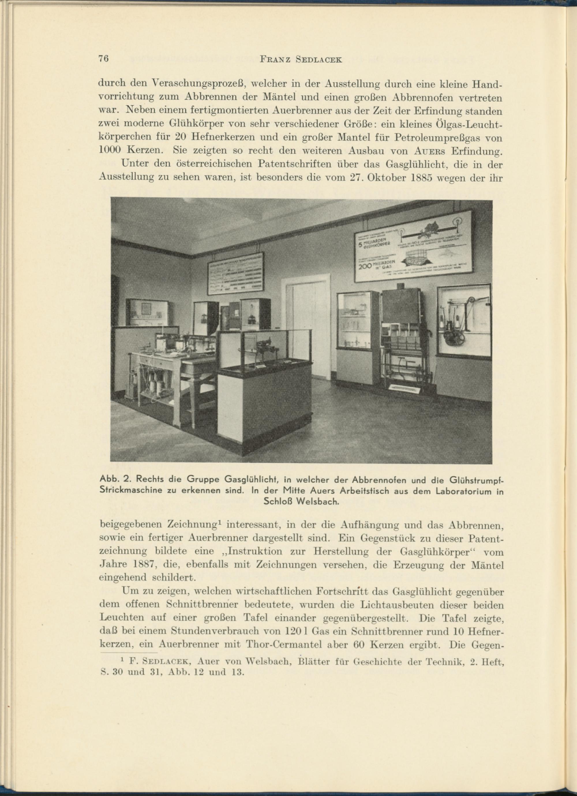 Die Dr. Carl Auer-Welsbach Gedächtnisausstellung im Technischen Museum für Industrie und Gewerbe in Wien / von Franz Sedlacek