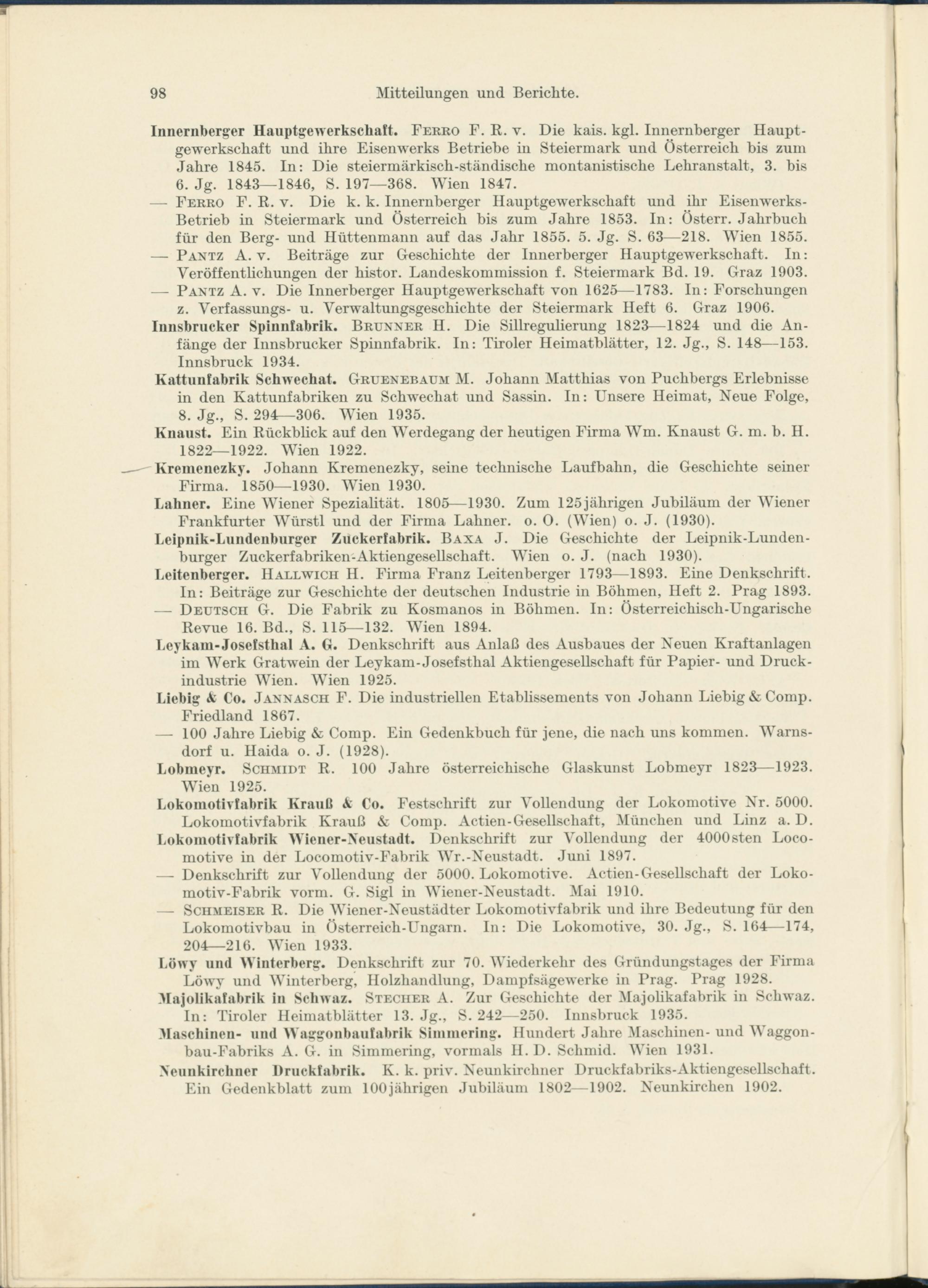 Mitteilungen und Berichte : Tätigkeitsbericht des Österreichischen Forschungsinstitutes für Geschichte der Technik