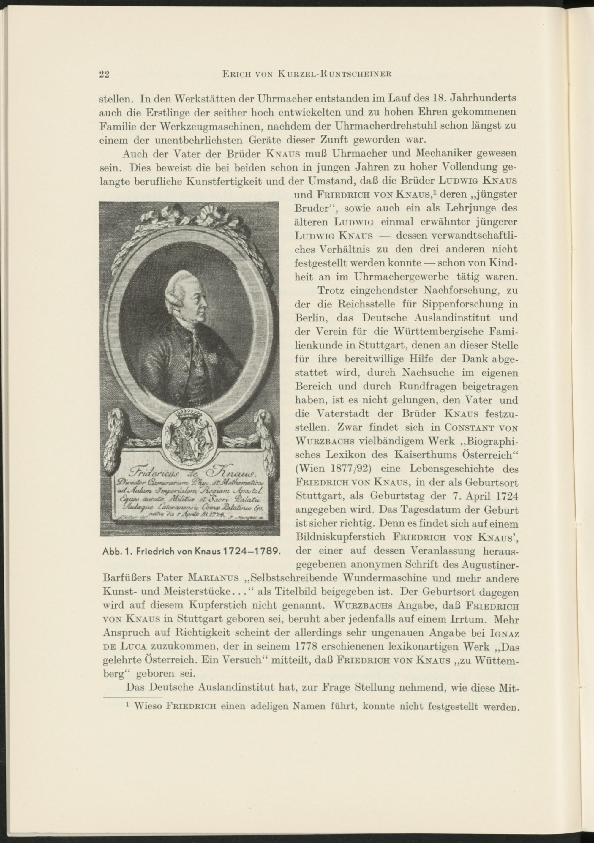 Zwei Meister der Kunstmechanik am Hof der Kaiserin Maria Theresia : Ludwig Knaus und Friedrich von Knaus ; ein technikgeschichtliches Kulturbild / von Erich Kurzel-Runtscheiner