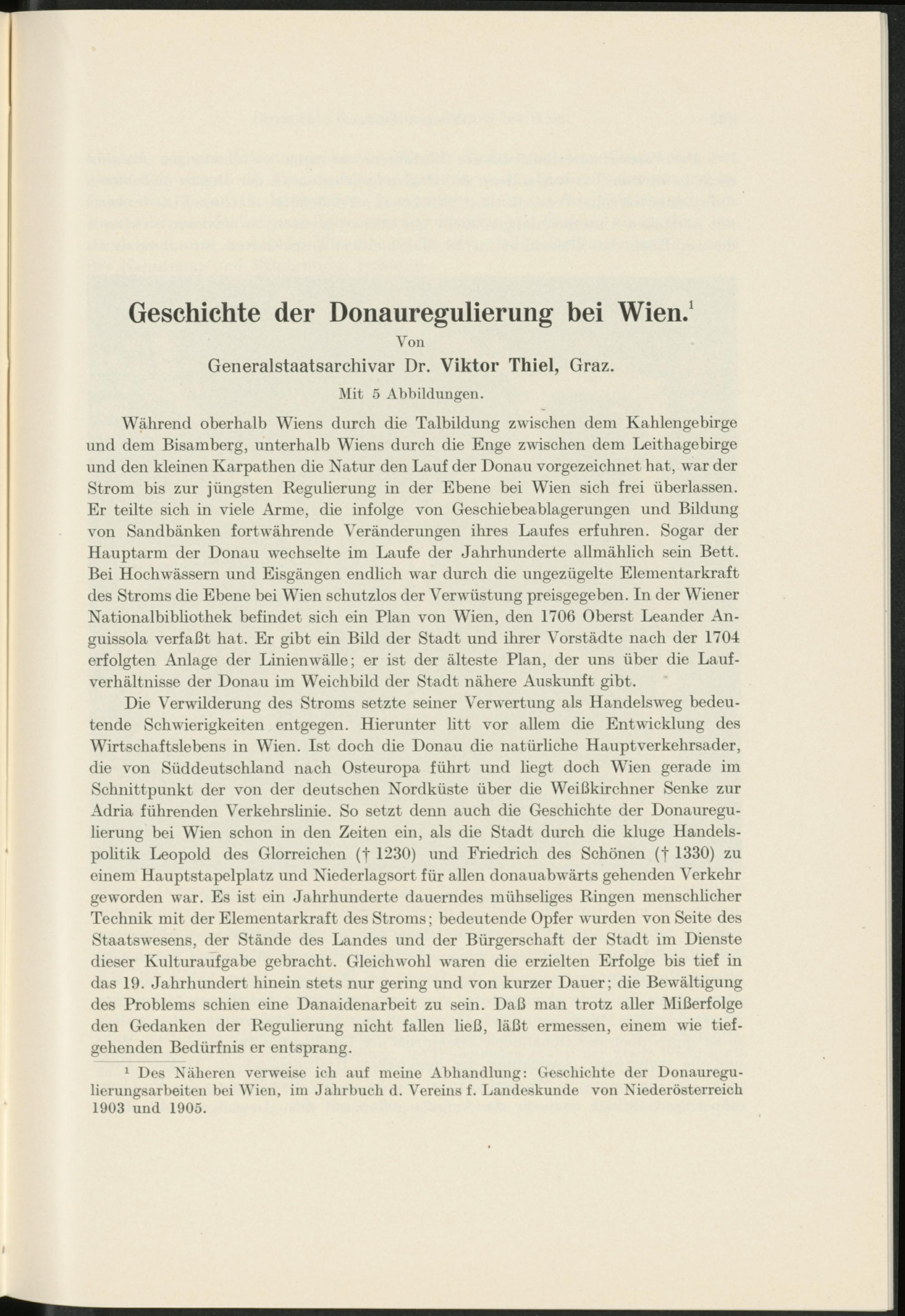 Geschichte der Donauregulierung bei Wien / von Viktor Thiel