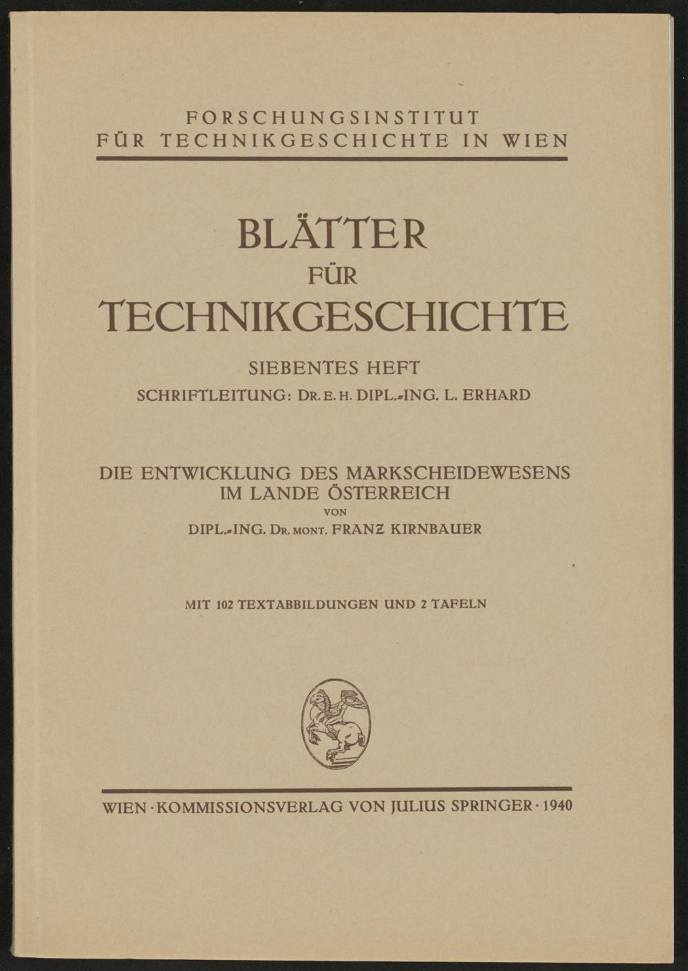 1940: Siebentes Heft : Die Entwicklung des Markscheidewesens im Lande Österreich / von Franz Kirnbauer