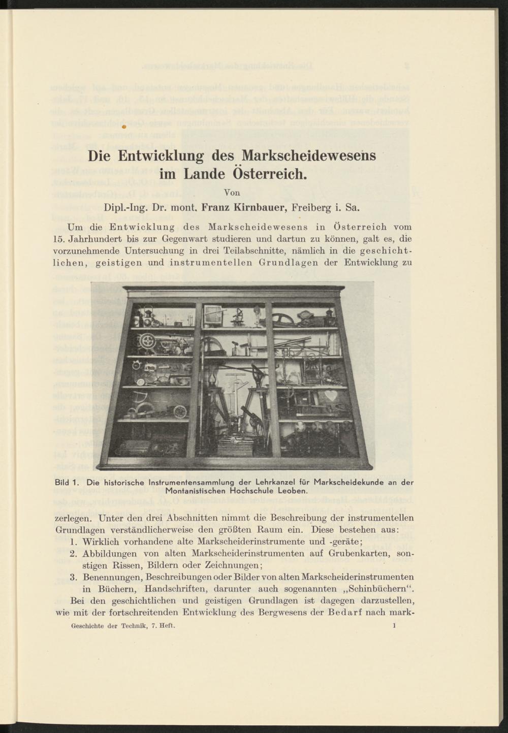 1940: Siebentes Heft : Die Entwicklung des Markscheidewesens im Lande Österreich / von Franz Kirnbauer