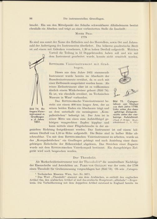 Stammbaummäßige Darstellung der Entwicklung der Markscheiderinstrumente und -Geräte