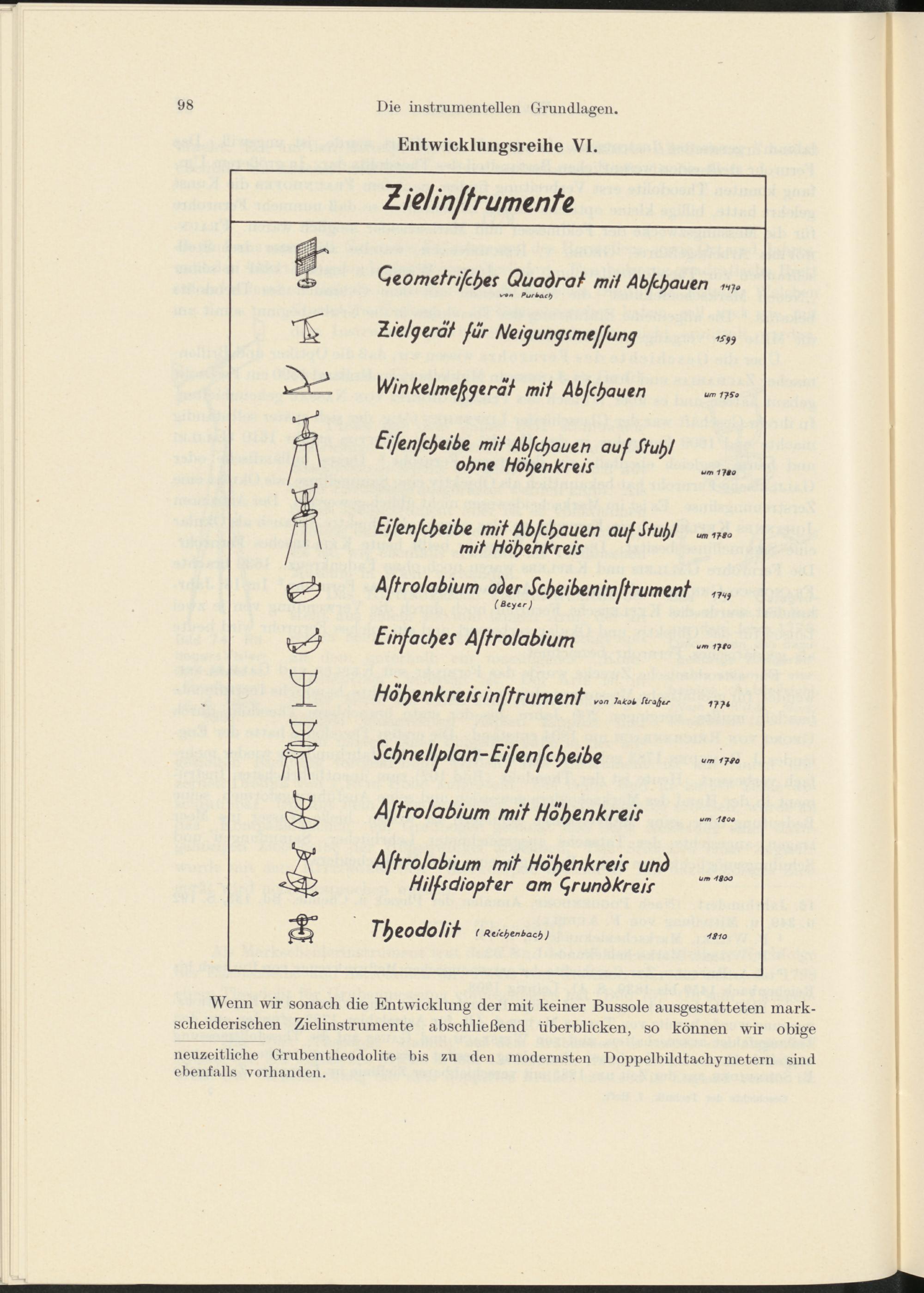 Stammbaummäßige Darstellung der Entwicklung der Markscheiderinstrumente und -Geräte