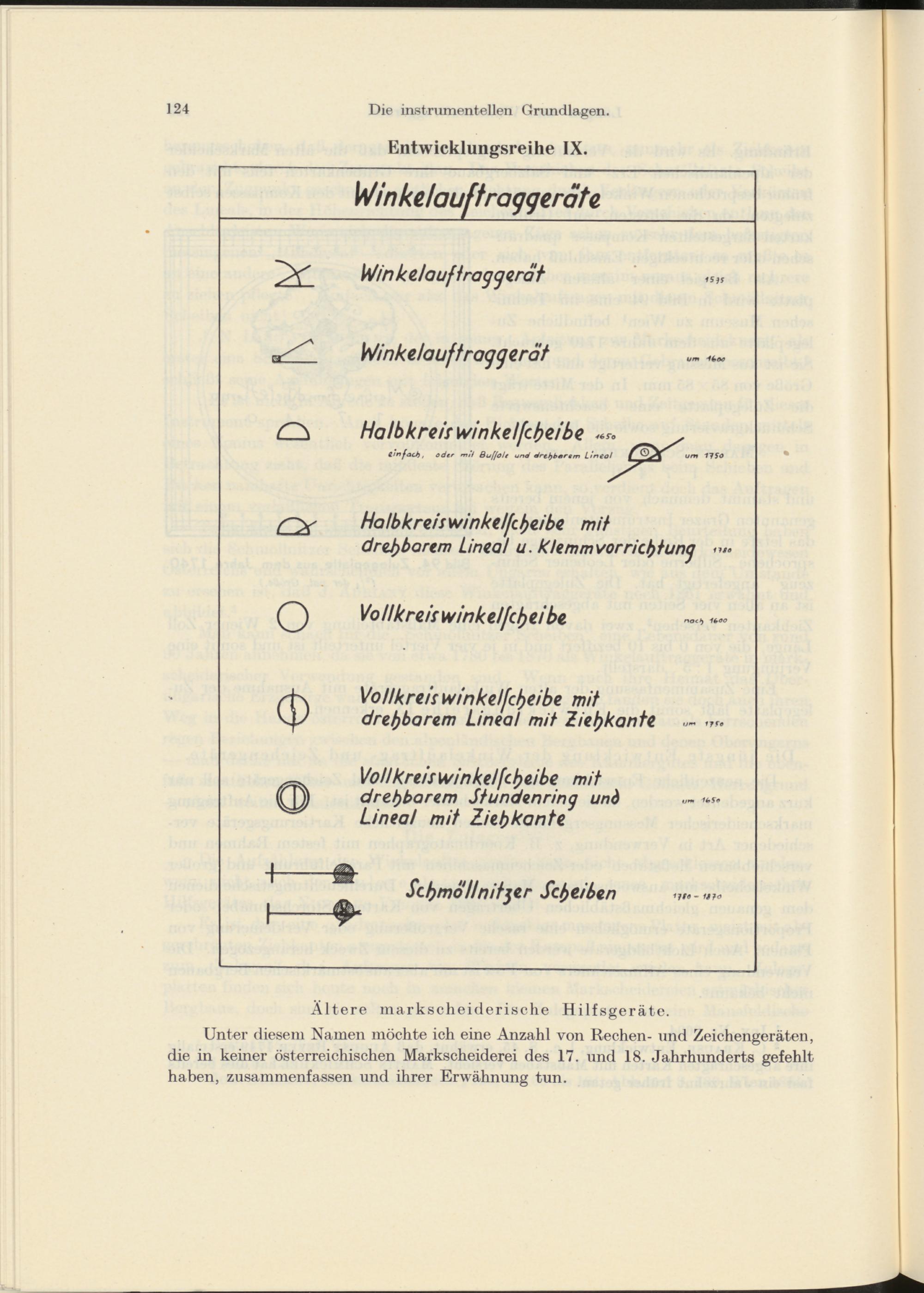 Stammbaummäßige Darstellung der Entwicklung der Markscheiderinstrumente und -Geräte