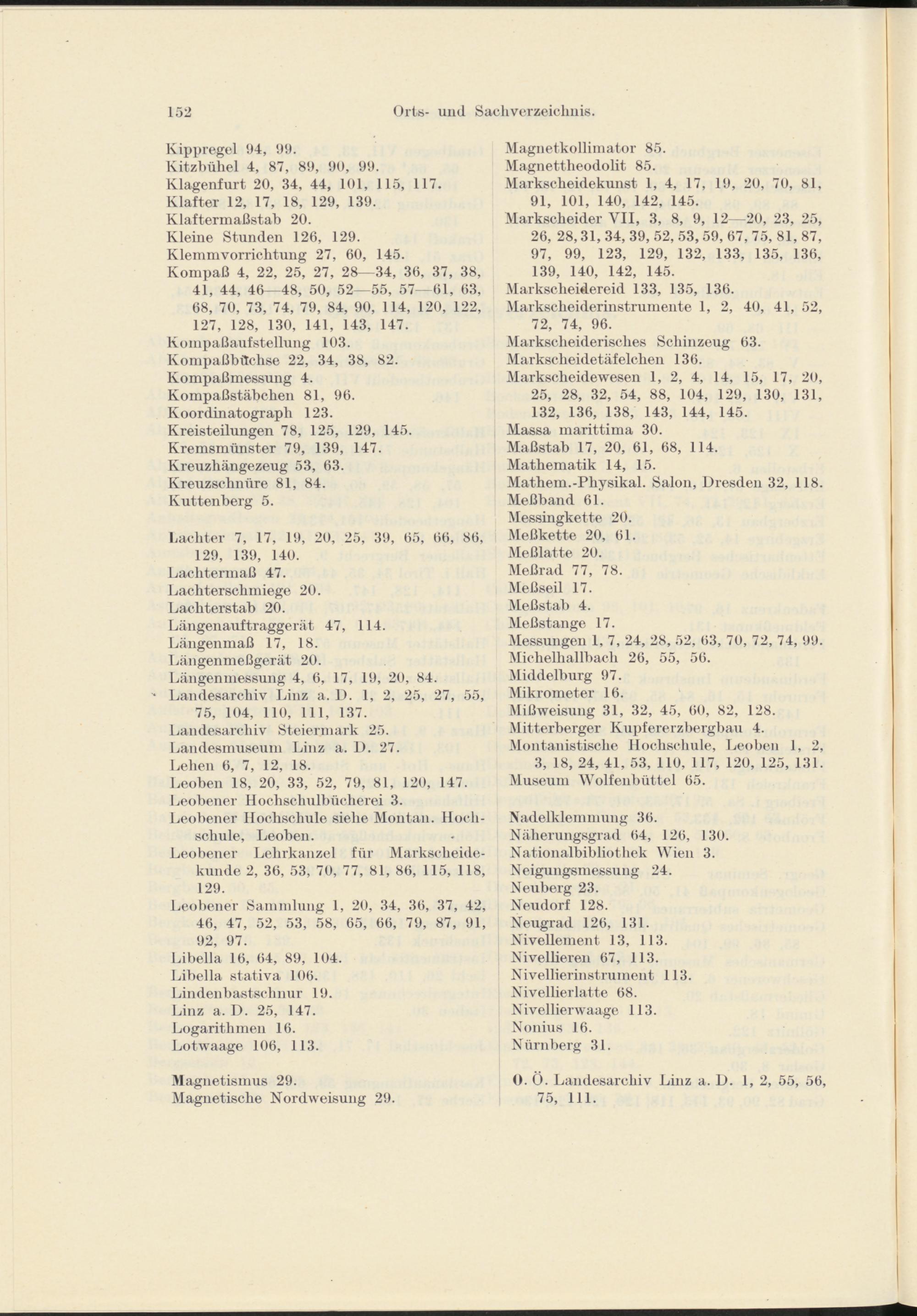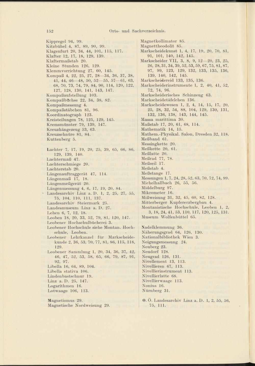 Verzeichnis der Namen und Namensanfangsbuchstaben von Verfertigern österreichischer Markscheiderinstrumente