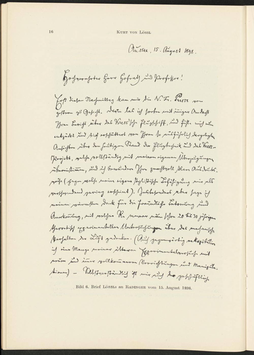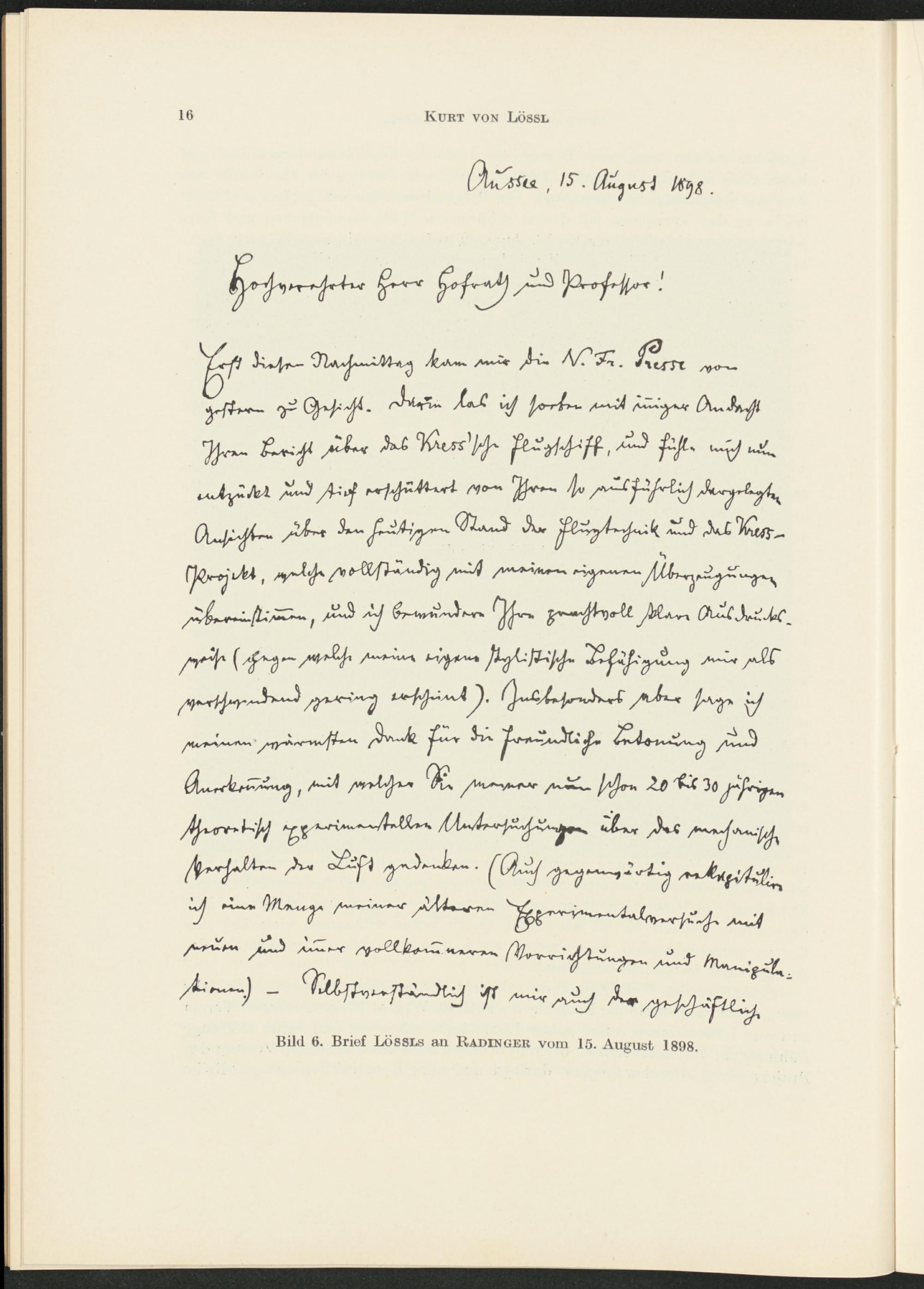 Die Arbeiten Friedrich Ritter von Lössls auf aerodynamischem und flug-mechanischem Gebiet