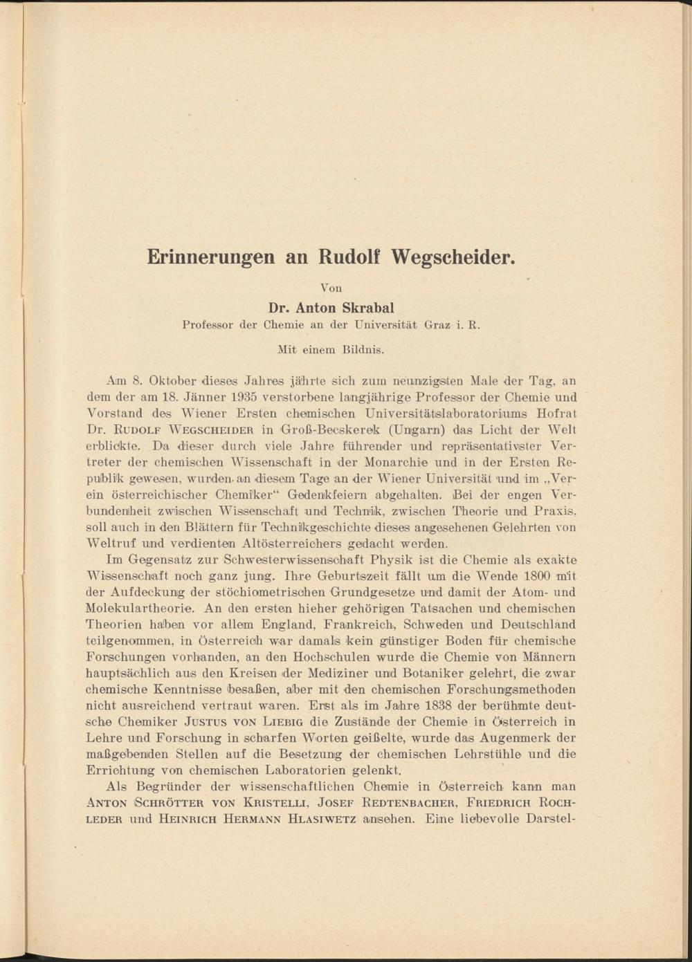Erinnerungen an Rudolf Wegscheider / von Anton Skrabal