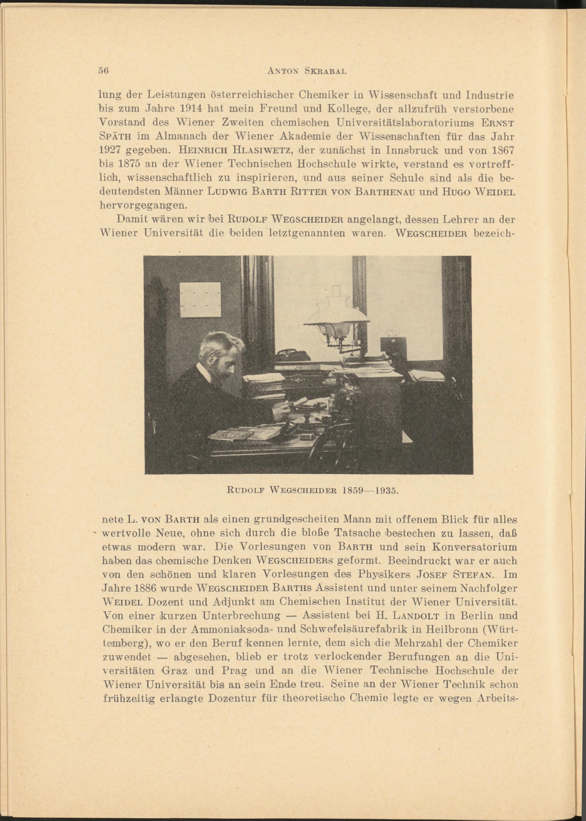 Erinnerungen an Rudolf Wegscheider / von Anton Skrabal
