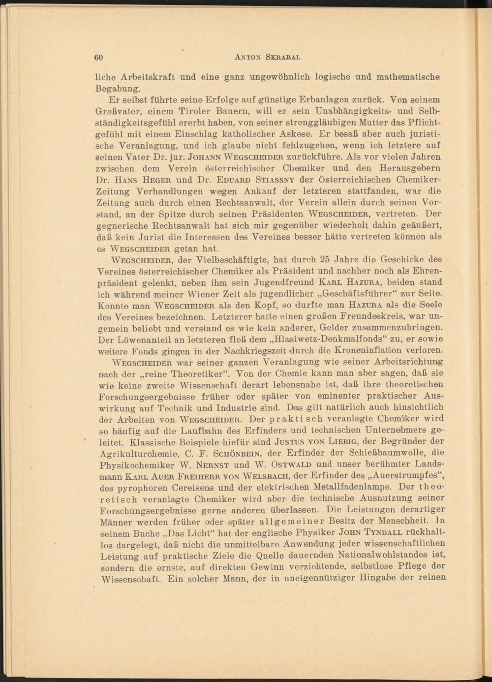 Erinnerungen an Rudolf Wegscheider / von Anton Skrabal