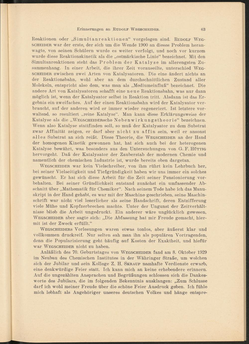 Erinnerungen an Rudolf Wegscheider / von Anton Skrabal