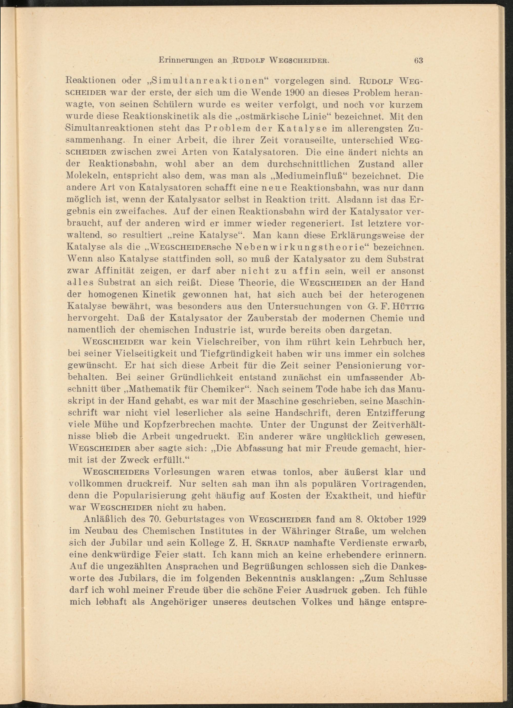 Erinnerungen an Rudolf Wegscheider