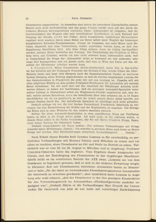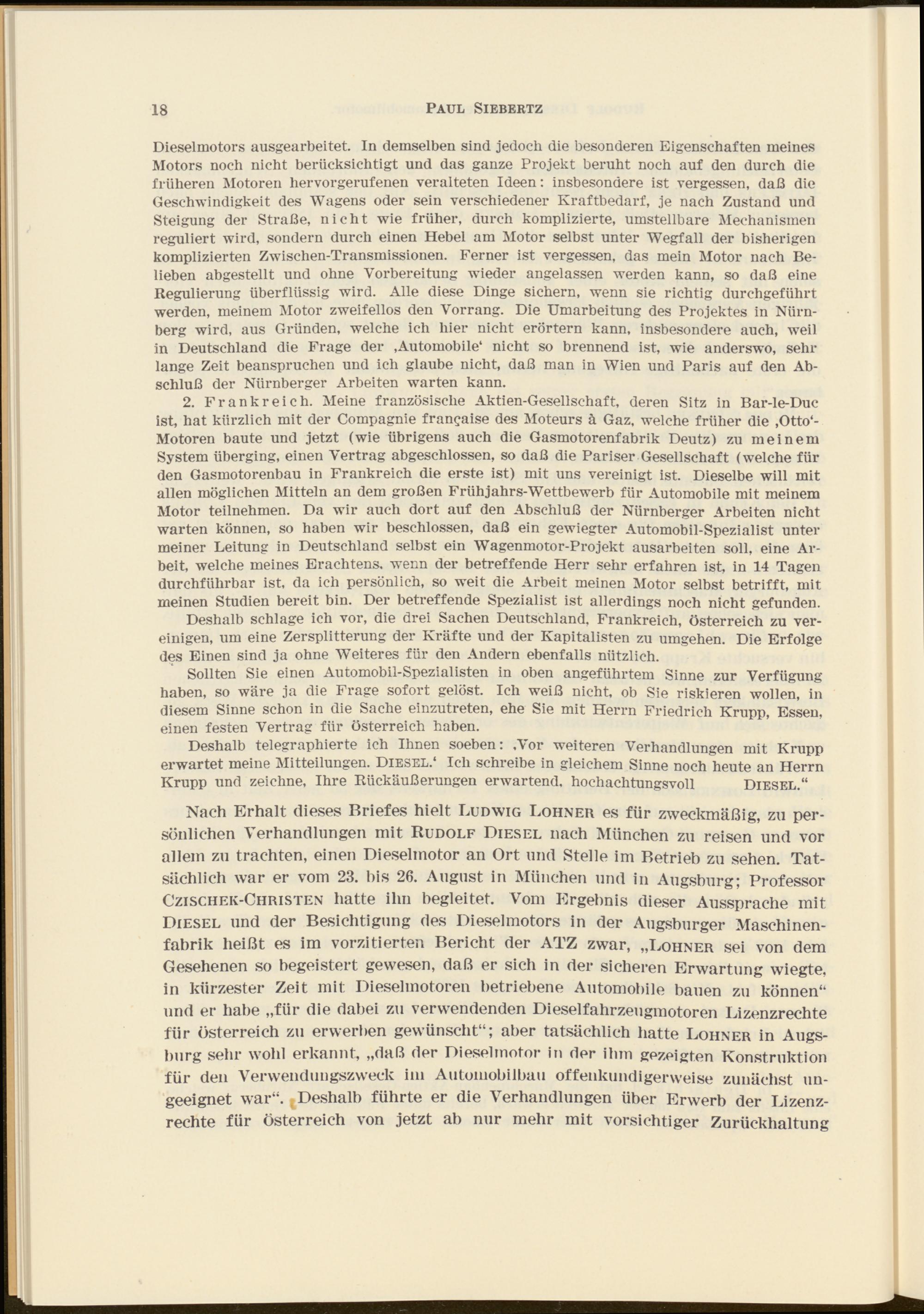 Rudolf Diesel und der Automobilmotor : ein Beitrag zur Geschichte des Fahrzeug-Diesels unter besonderer Berücksichtigung der Rolle Ludwig Lohners darin / von Paul Siebertz